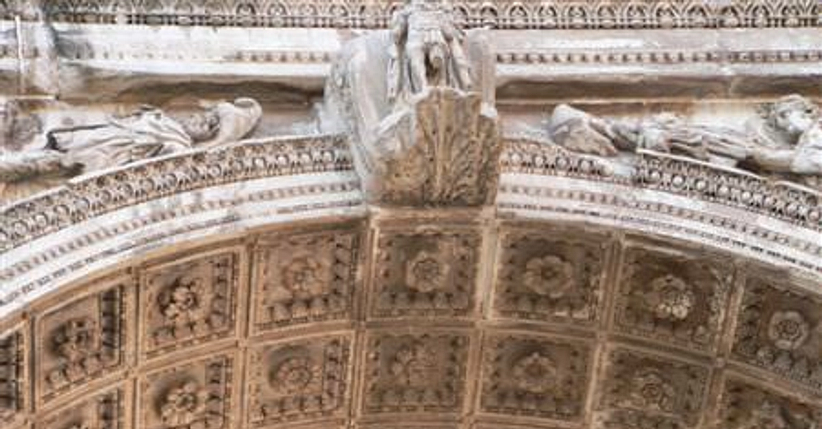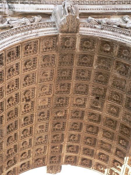 The intrados or inner surface of the principal arch of the Triumphal Arch of Septimius Severus built in 203 CE.
