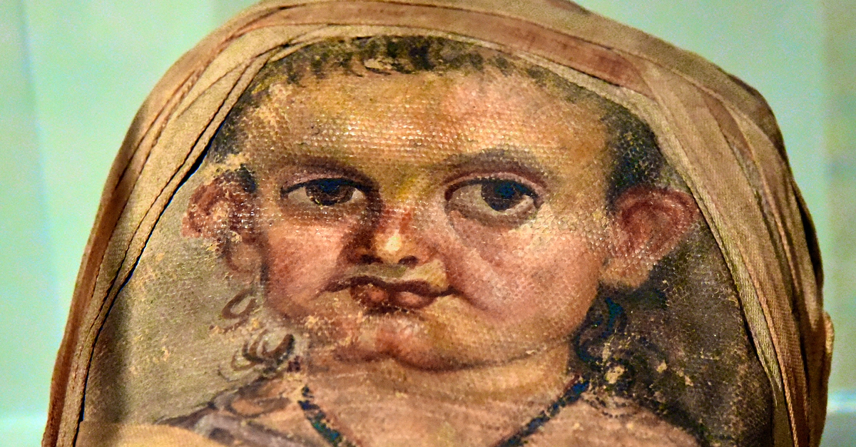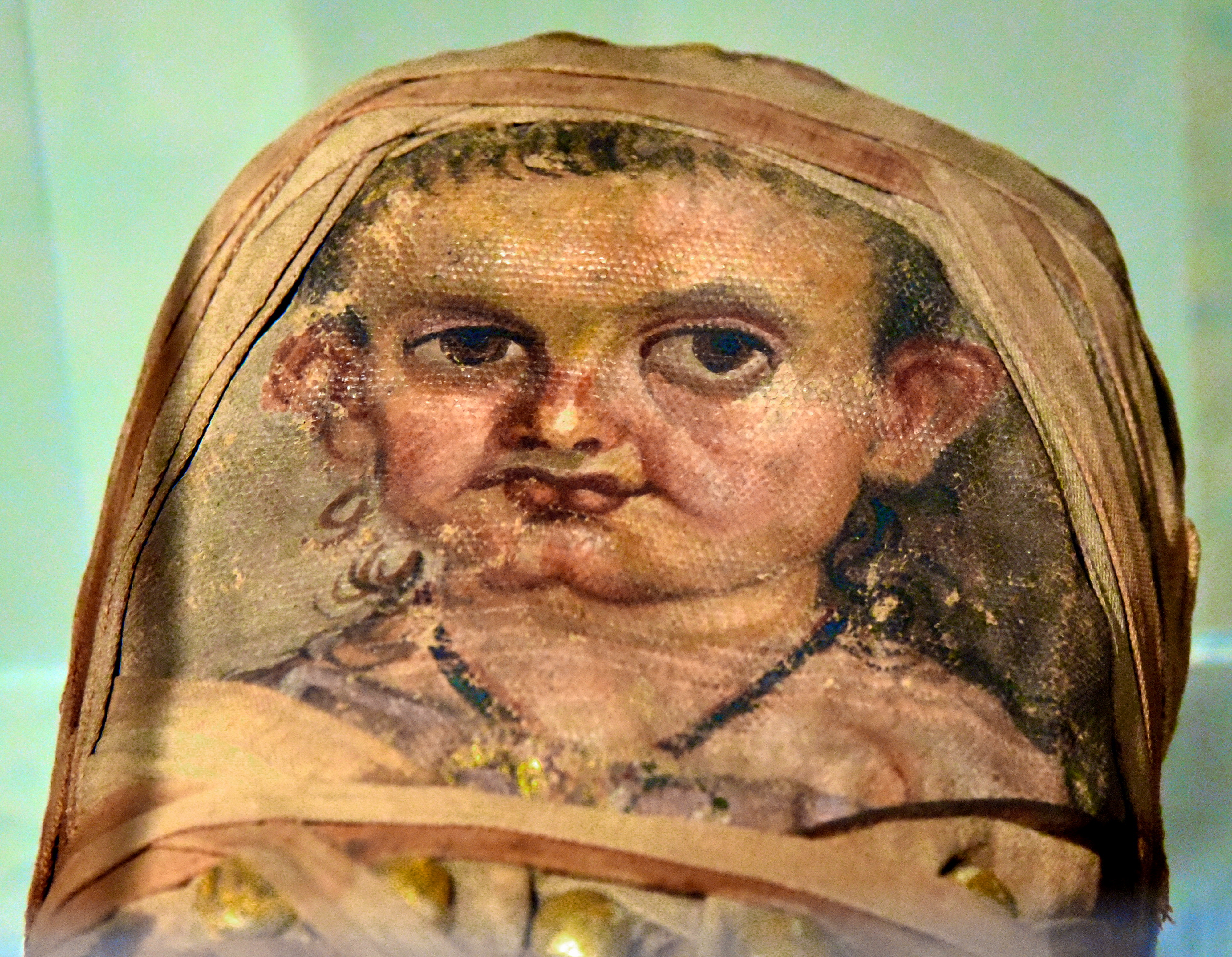 Mummy portrait from the Tomb of Aline, Hawara. Early Roman Period of Egypt, c. 24 CE.