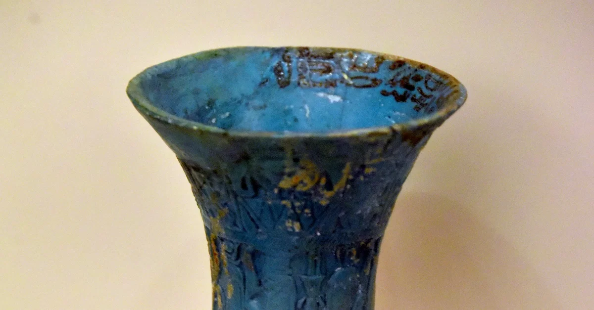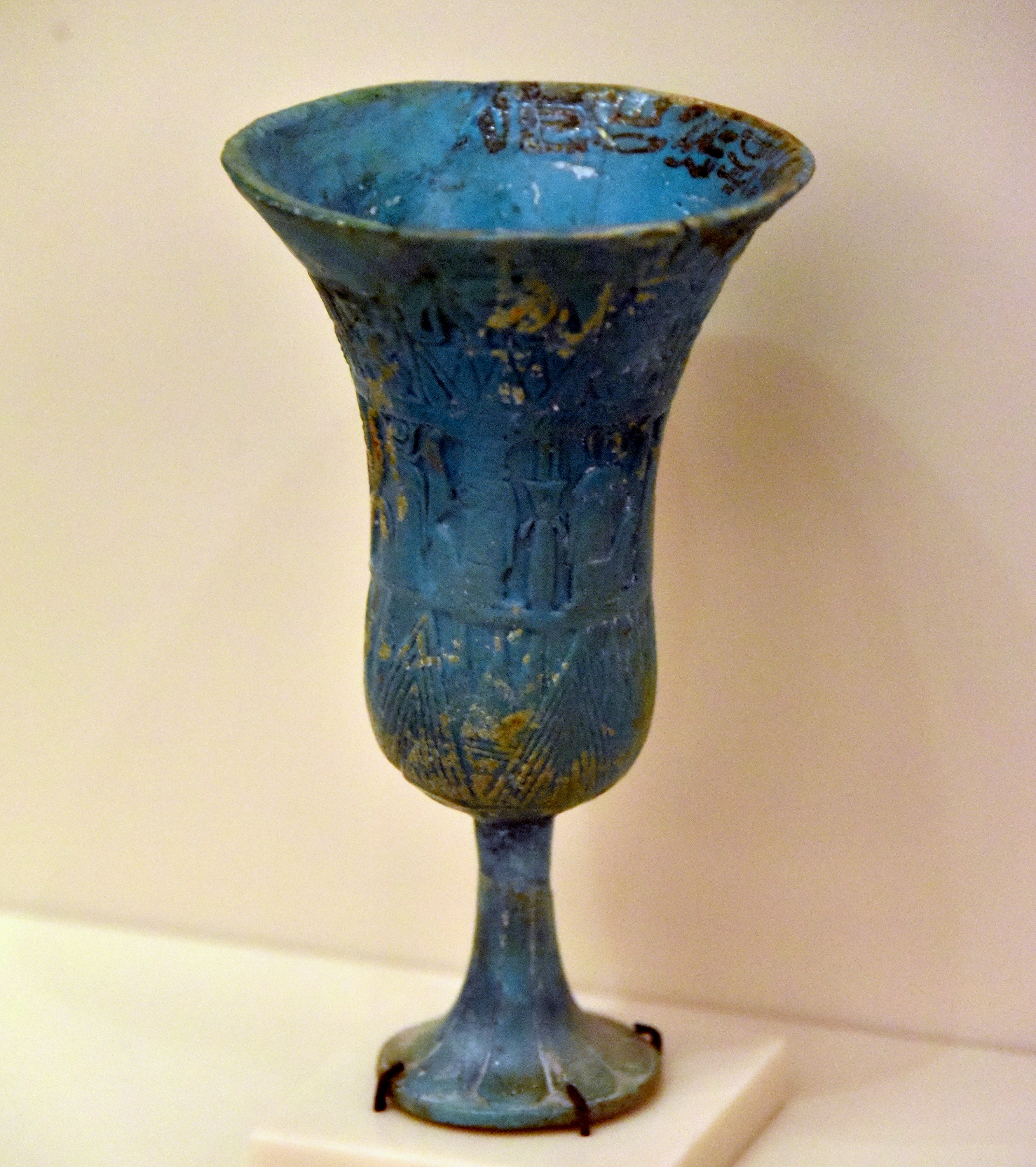 Faience cup of Shoshenq with a representation of different deities. From Saqqara, Egypt. Third Intermediate Period, 22nd (Libyan or Bubastite) Dynasty, 944-716 BCE. It is on display at the Neues Museum, Berlin, Germany.