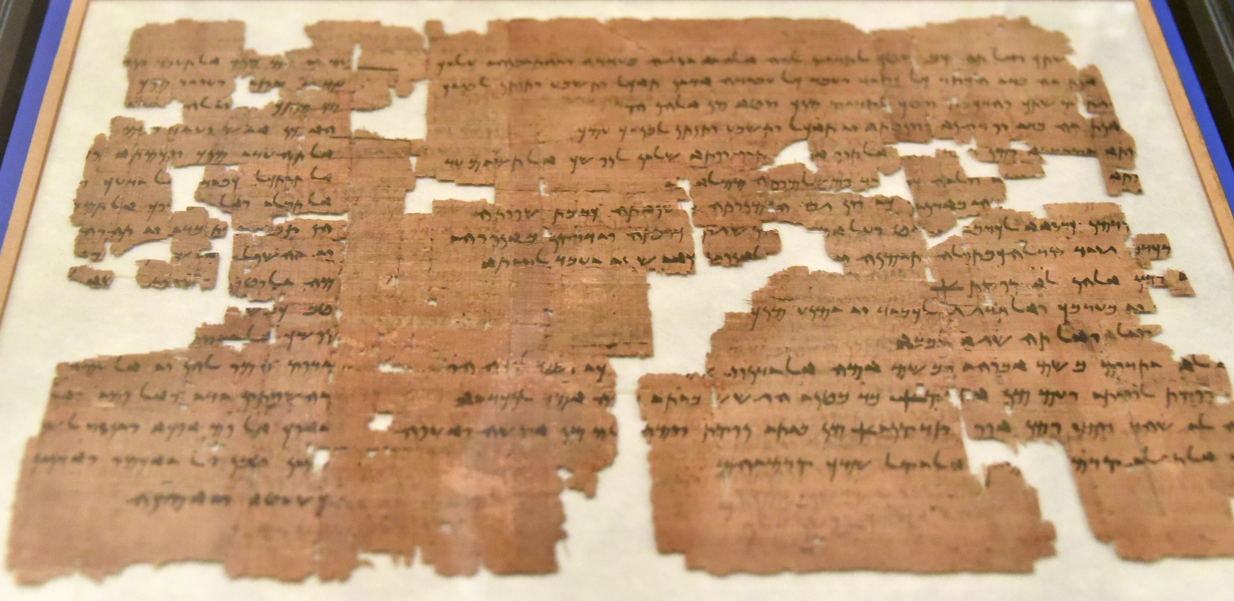 This papyrus is written in Aramaic and mentions the story of Ahiqar (the Words of Ahikar) who was a chancellor to the Assyrian kings Sennacherib (r. 705-681 BCE) and Esarhaddon (r. 681-669 BCE). This papyrus came from Elephantine in Upper Egypt. A large number of Aramaic papyri were excavated at Elephantine and probably belonged to an Aramaic Jewish community. Fifth century BCE. It is on display at the Neues Museum in Berlin, Germany, Exhibition of Cinderella, Sindbad & Sinuhe, Arab-German Storytelling Traditions.