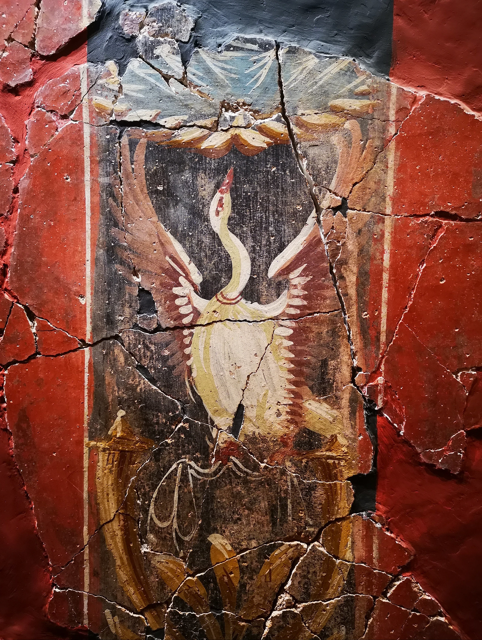 Roman fresco depicting a swan in the tablinum of the House of Fortune in Carthago Nova (modern-day Cartagena), a city on the southern Iberian Peninsula, Spain. The house dates to the late 1st century BCE and was occupied until the late 2nd century CE. It covered an area of 204 m2 and belonged to a wealthy family.