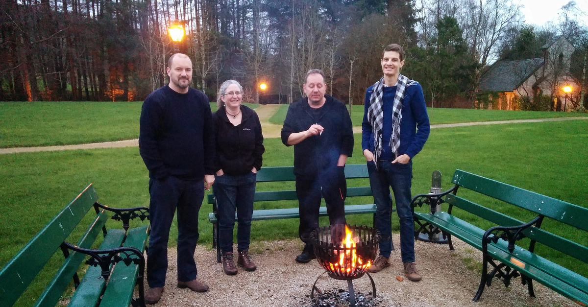 From left to right: Mark Cartwright, Karen Barrett-Wilt, Joshua Mark, James Blake Wiener. Pictured in Wicklow, Ireland, 2015.