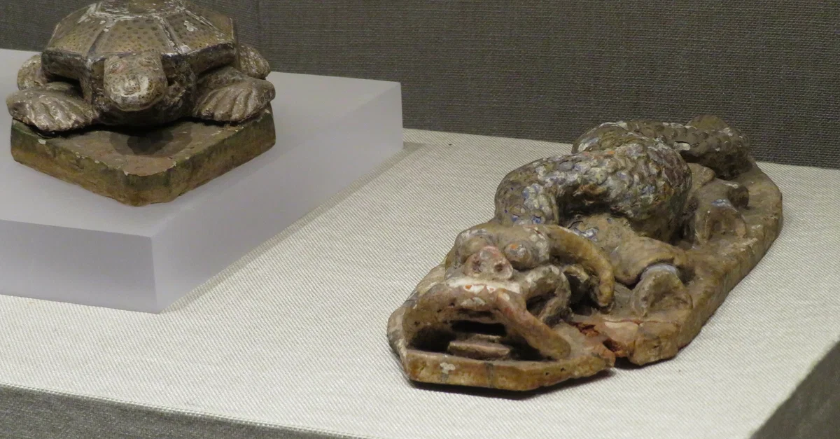 A black turtle and azure dragon representing the cardinal directions of north and east respectively. From Xanadu (Shangdu), the summer capital of the Yuan Dynasty (1271-1368 CE). (Archaeological Museum of Inner Mongolia, Hohhot)