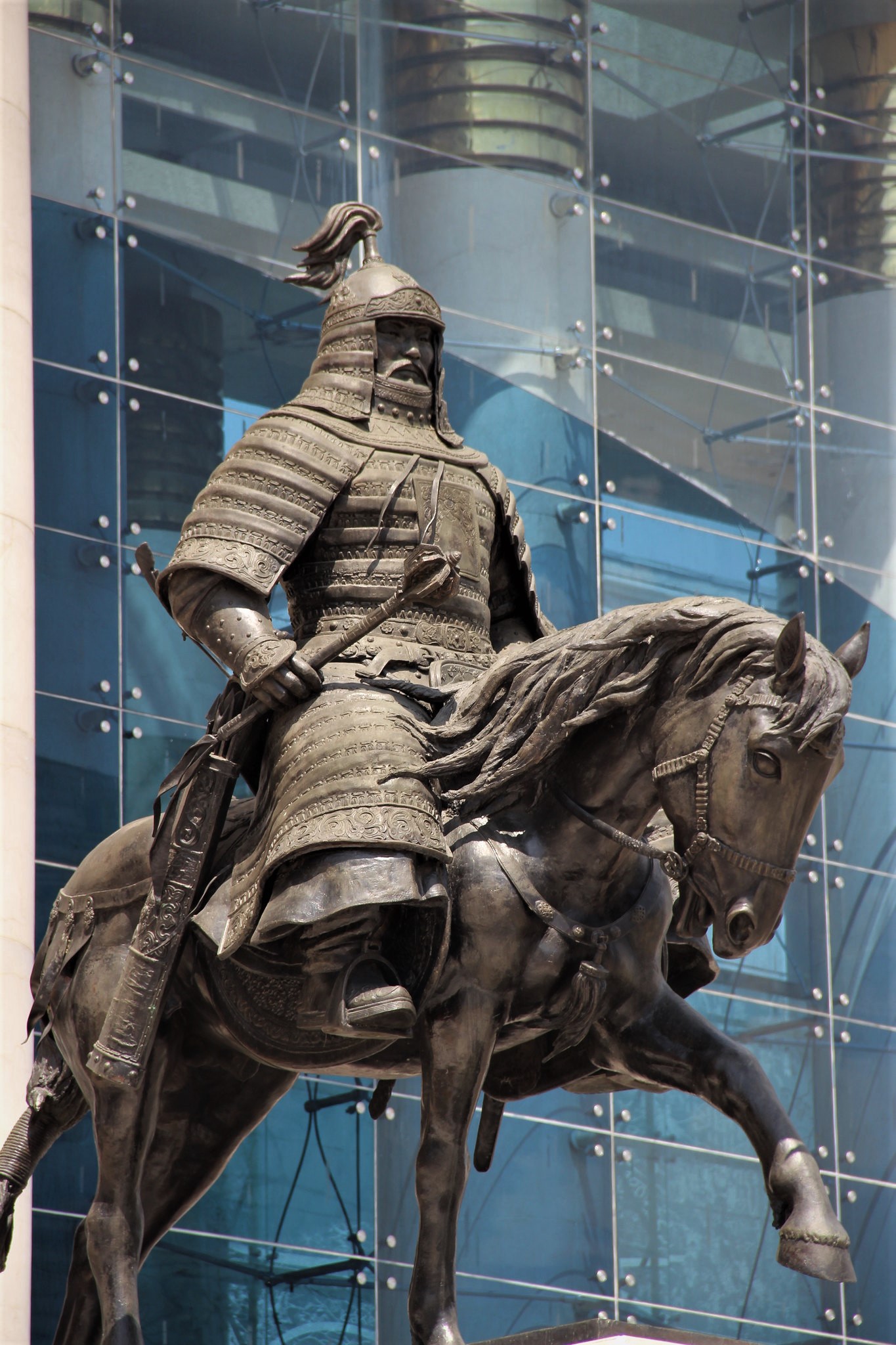 The statue of the Mongolian general Bo'orchu (c. 13th Century CE), in front of the Mongolian Parliament House. Bo'orchu was one of the most trusted generals of Genghis Khan (c. 1206 - 1227 CE), and later, a close friend of Ogedei Khan (1229 - 1241 CE). The statue of Bo'orchu was set up in front of the Mongolian Parliament House in 2006 CE to commemorate the 800th anniversary of Genghis Khan's unification of the Mongols in 1206 CE. Statues of Genghis Khan, his sons, and his other generals, were also created at the time.