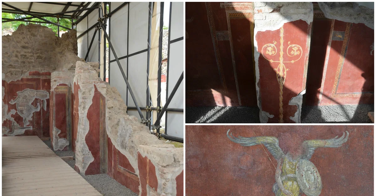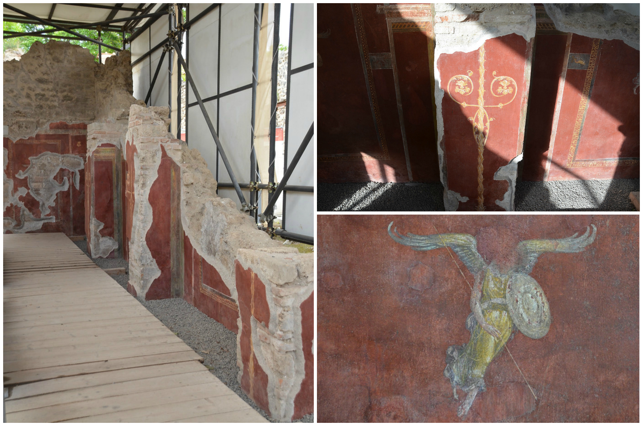 The School of Gladiators (Schola Armaturarum) in Pompeii was probably the headquarters of a military association of gladiators, a place used for meetings and social gatherings. The building suffered heavy damage from bombing during World War II and caused outcry when it collapsed in November 2010 following heavy rainfall. The restoration interventions began in 2016 and the building reopened to the public in January 2019.