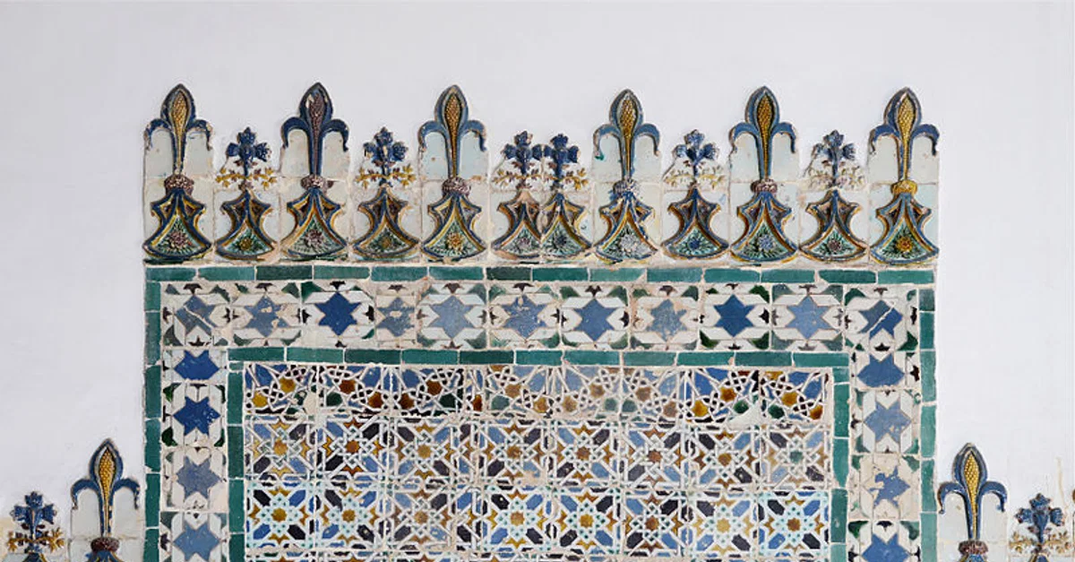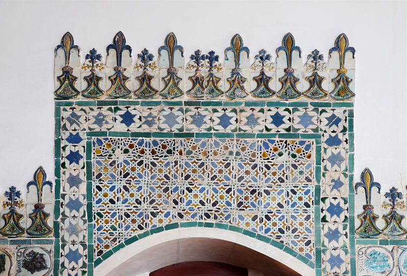 Islamic ceramic tiles in the Arab Room in the Sintra palace (Palácio Nacional de Sintra), Portugal. King Manuel I of Portugal (r.1495-1521 CE) imported azulejos (glazed ceramic tiles) from the Alhambra palace in Granada, Spain to decorate this room in his palace. This photo was taken in 2015 CE.