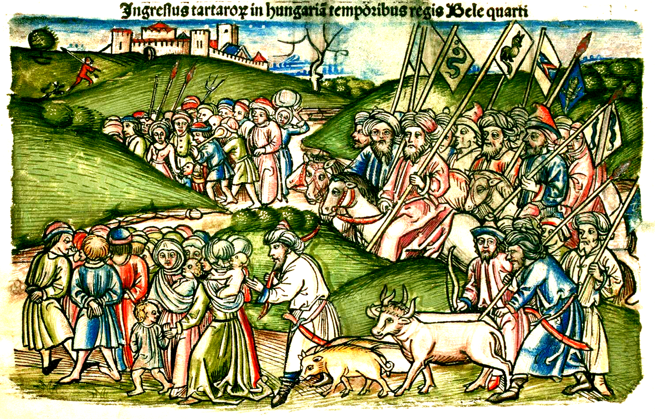 The Mongol invasion of Hungary (1241 CE) in Chronica Hungarorum by Johannes de Thurocz (1488 CE).