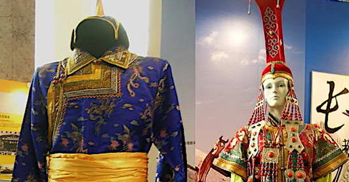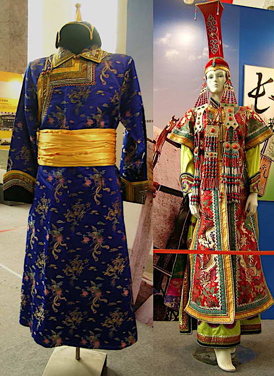 Examples of male and female clothing worn by Mongols at the imperial Yuan Dynasty court in the 13th and 14th century CE. (Intangible Cultural Heritage Exhibition, National Museum of China, Beijing)