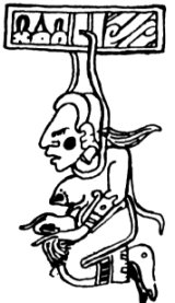 Depiction of a Maya deity or supernatural figure appearing on page 53a of the Dresden Codex, identified as a representation of Ixtab.