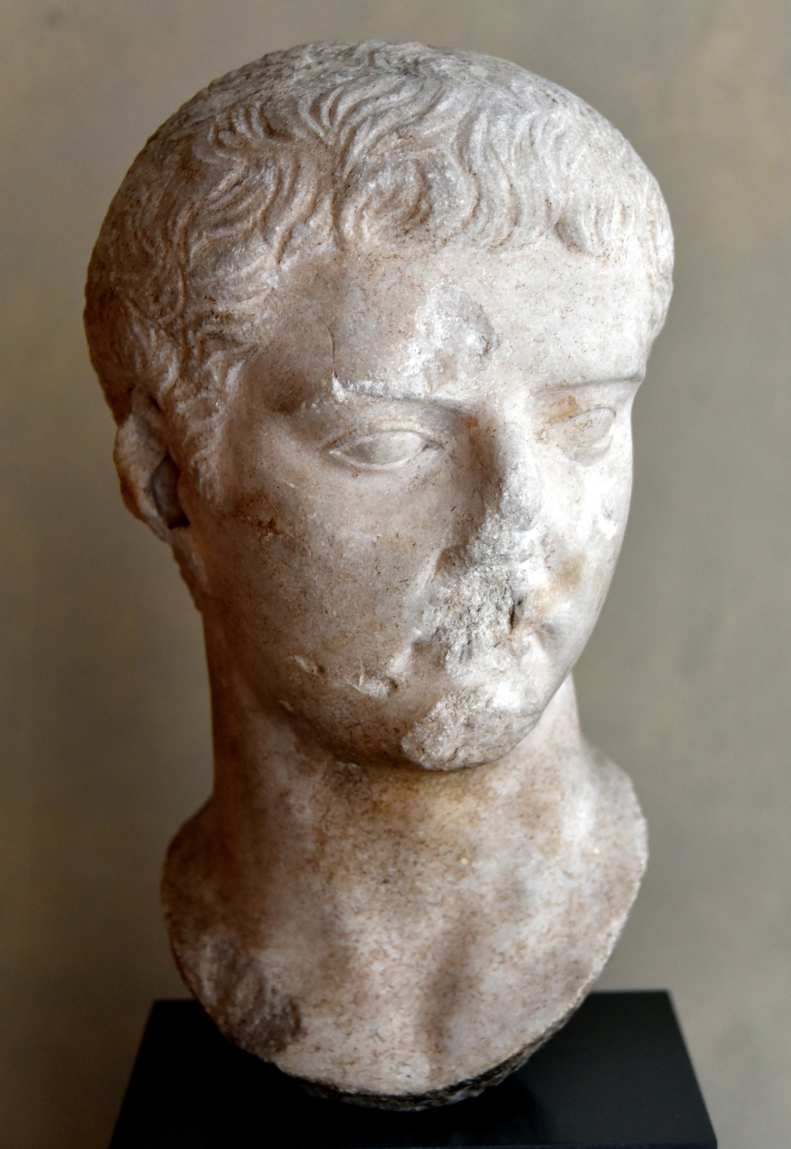 This marble sculpture depicts the Roman emperor Tiberius (reigned 14-37 CE) in his youth. Early 1st century CE. From Troy, Turkey. It is on display at the Neues Museum, Berlin, Germany.