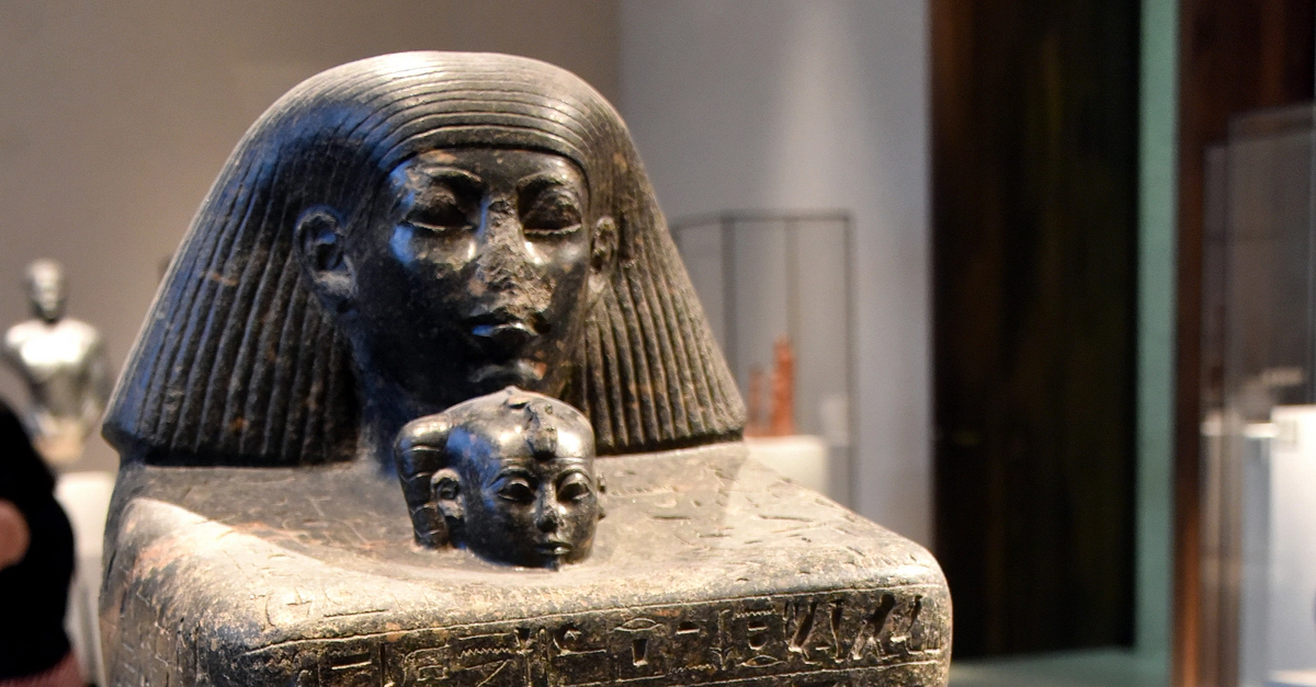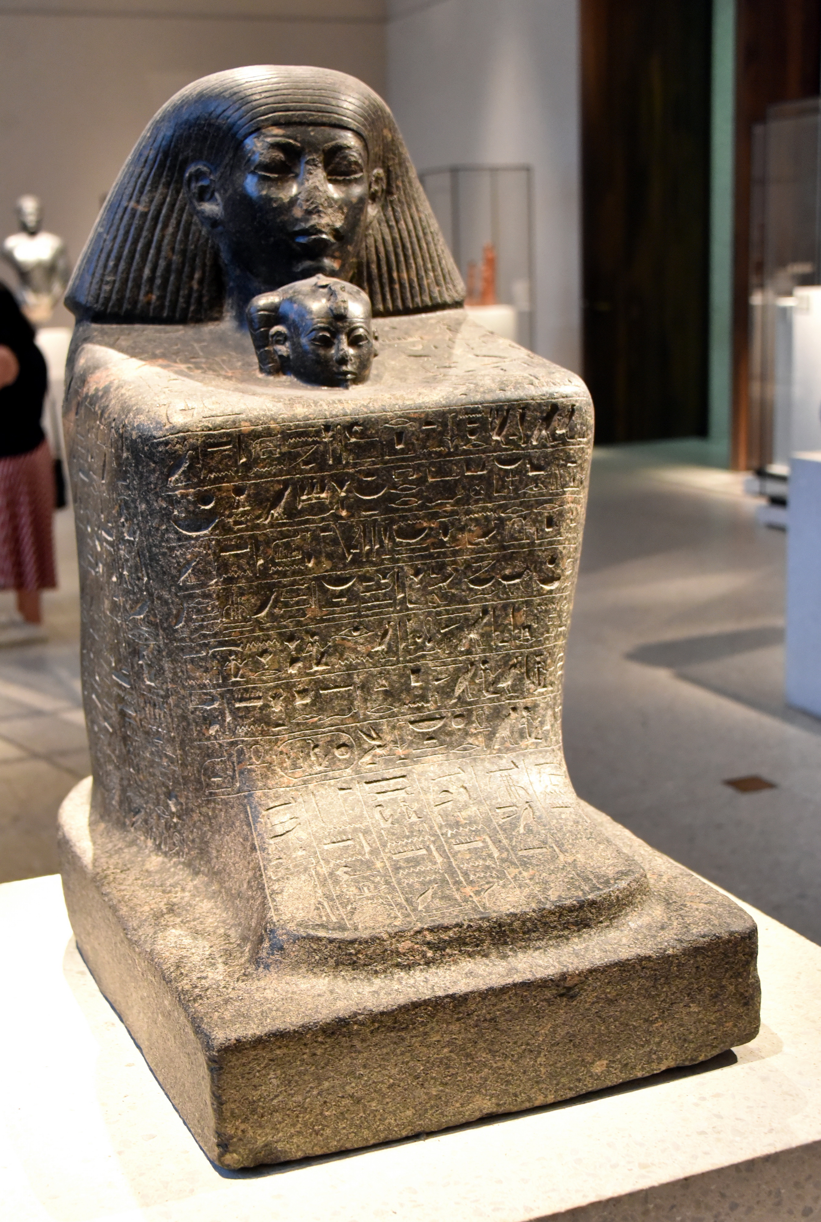 Neferure was Hatshepsut's daughter. Senenmut was a confidant and educator of Neferure in addition to being an architect and government official. He was allowed to erect his own statues in Thebes (reflecting his high status). The girl is wrapped by a large cloak and only her head appears. The cartouches of Hatshepsut are carved on the surface of the statue. Granite. From Western Thebes, Egypt. New Kingdom, 18th Dynasty, 1473-1458 BCE. It is on display at the Neues Museum, Berlin, Germany.