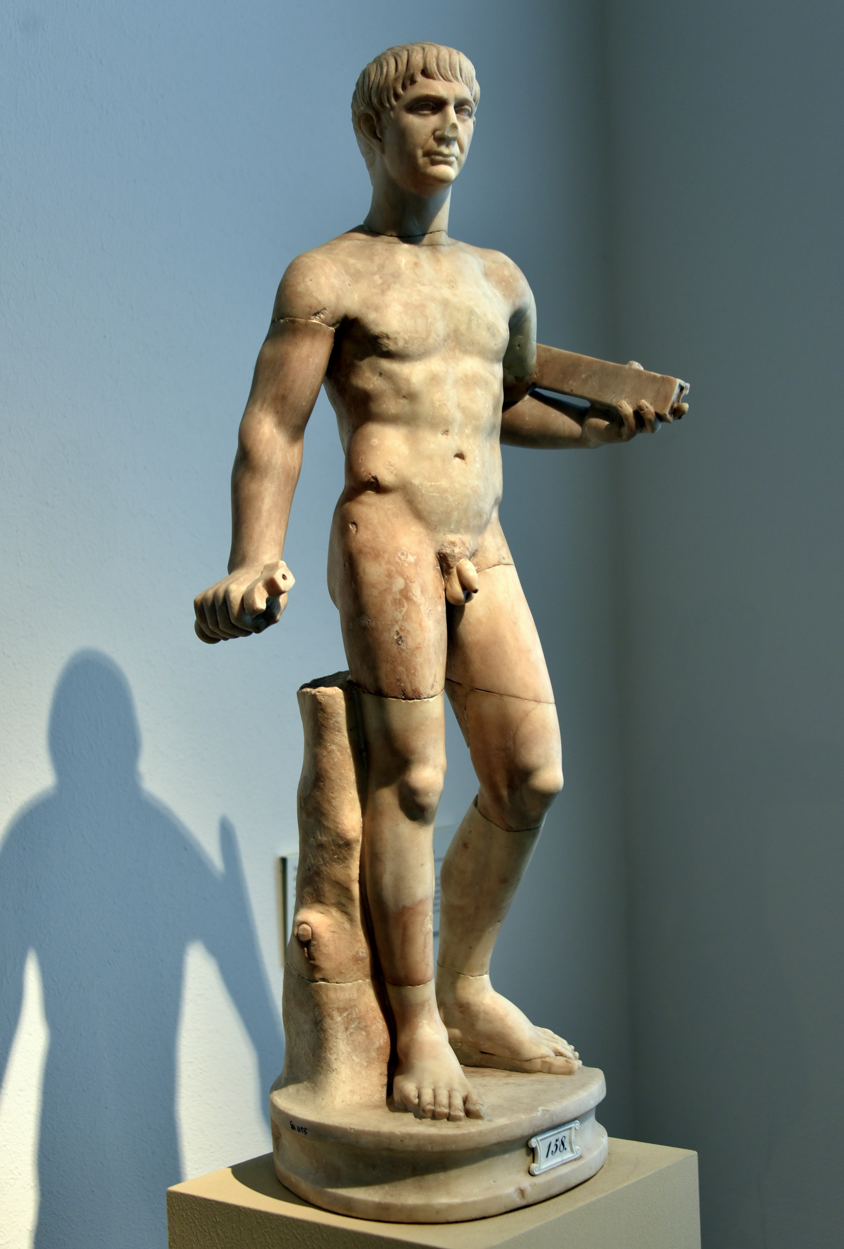 The head and torso of this statuette did not originally go together. The head is a portrait of the Roman Emperor Trajan (r. 98-117 CE). Records of the sculpture, first presumed to be a gladiator, can be traced back to the Venetian Andrea Vendramin and from 1629 CE onwards to the Collection of the Reynst Brothers, Jan and Gerard, in Amsterdam. Marble. Roman, early 2nd century CE. Acquired in 1671 CE from G. Uylenburgh (Amsterdam). It is on display at the Altes Museum in Berlin, Germany.