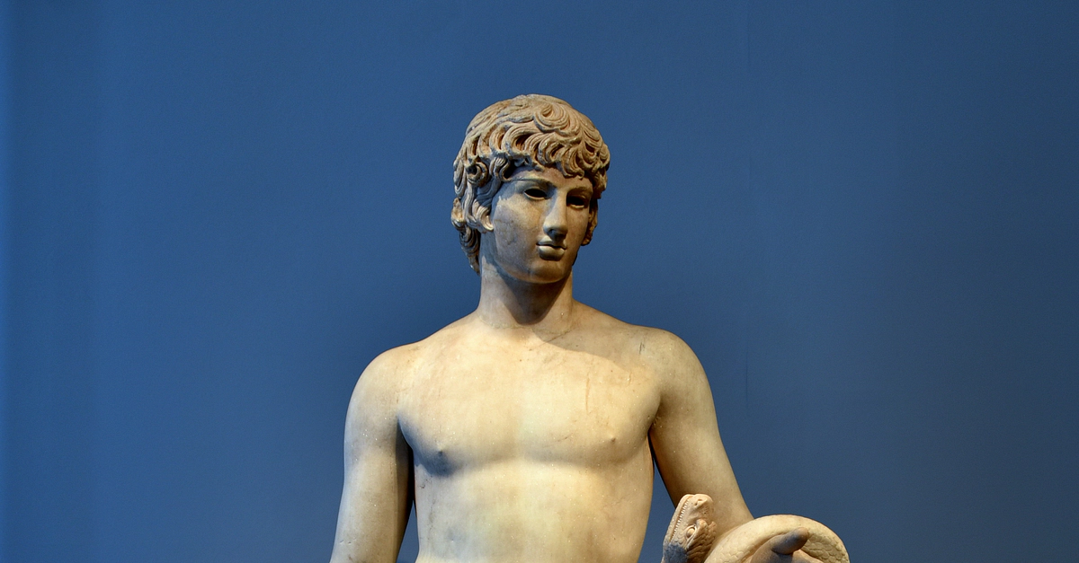 The head and the statue are ancient but were combined as recently as the 18th century. The portrait depicts the Roman Emperor Hadrian's lover, Antinous, depicted with a snake and cornucopia. The attributes allow the statue to be interpreted as Agathos Daimon (Agathodaemon; protective spirit). Marble. Around 130-140 CE. Acquired in Rome, Italy, in 1766 CE. It is on display at the Altes Museum in Berlin, Germany.