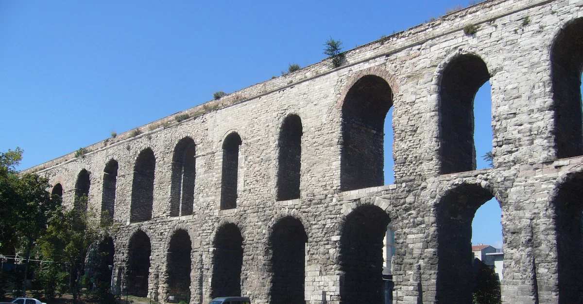 A remaining section of the aqueduct built by Emperor Valens in the 4th century CE in Constantinople.