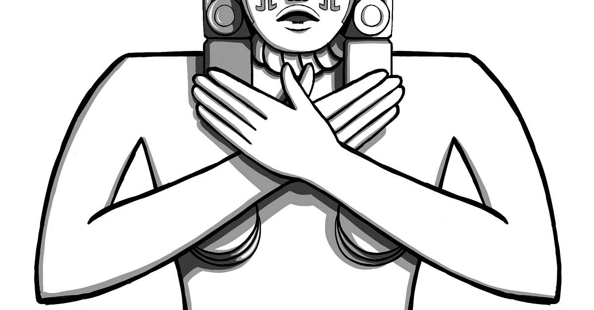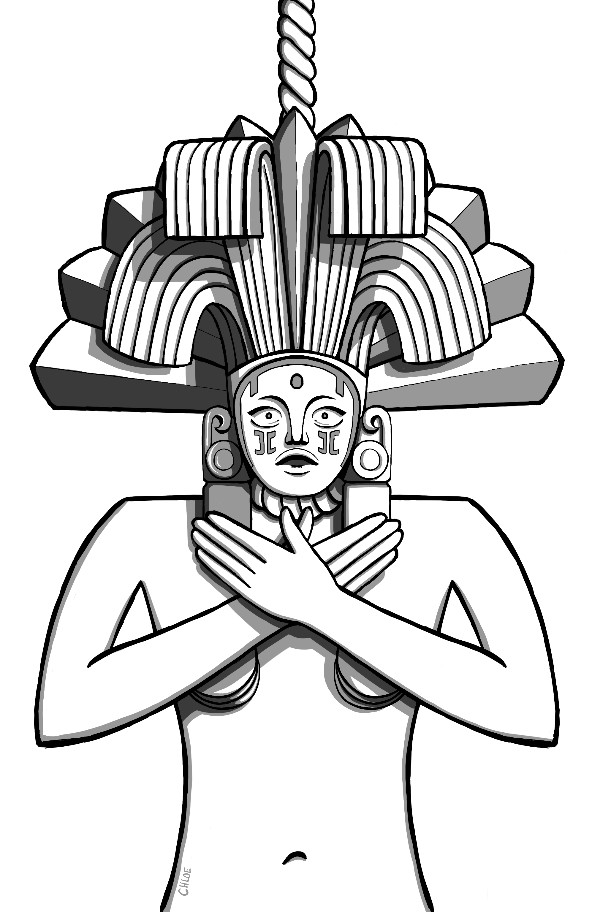 Ixtab was the Maya goddess of suicide who guides suicides to eternal paradise - depicted as the decaying corpse of a woman hanging from a noose in the heavens. This is an artist's impression of Ixtab drawn by Chloe Bonnet.
