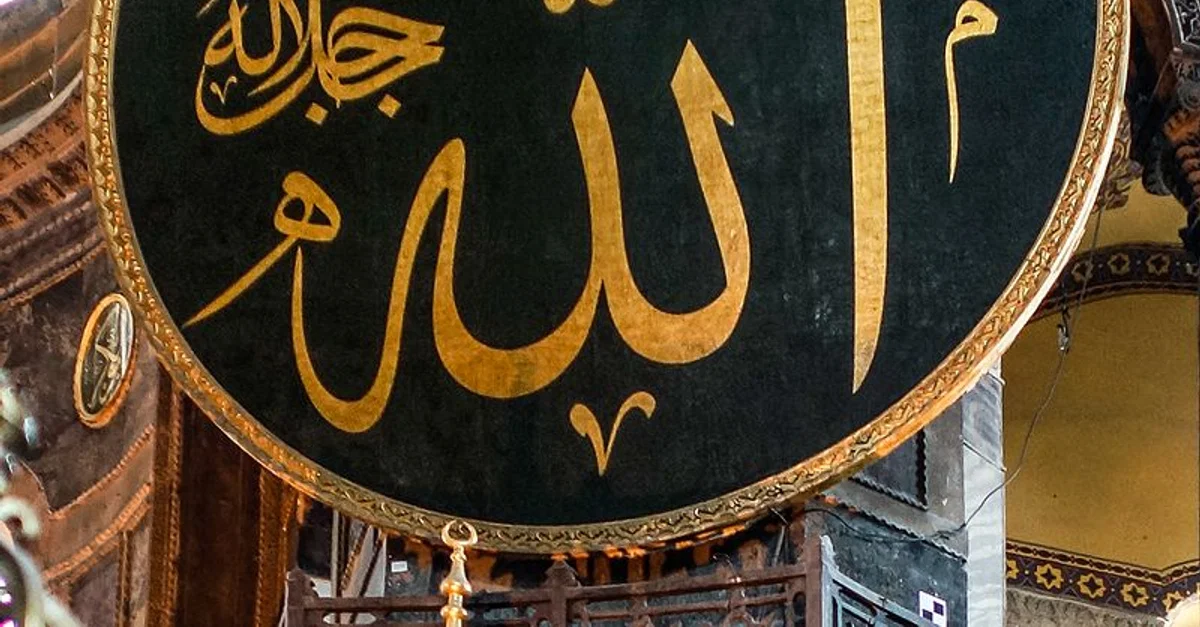 A medallion with the phrase "Allah Jalla Jalaluhu" ("May His glory be glorified"), in Arabic calligraphy. The medallion was installed in the Hagia Sophia between 1847 and 1849 CE when the building was restored by Ottoman sultan Abdulmejid I (r. 1839 - 1861 CE).