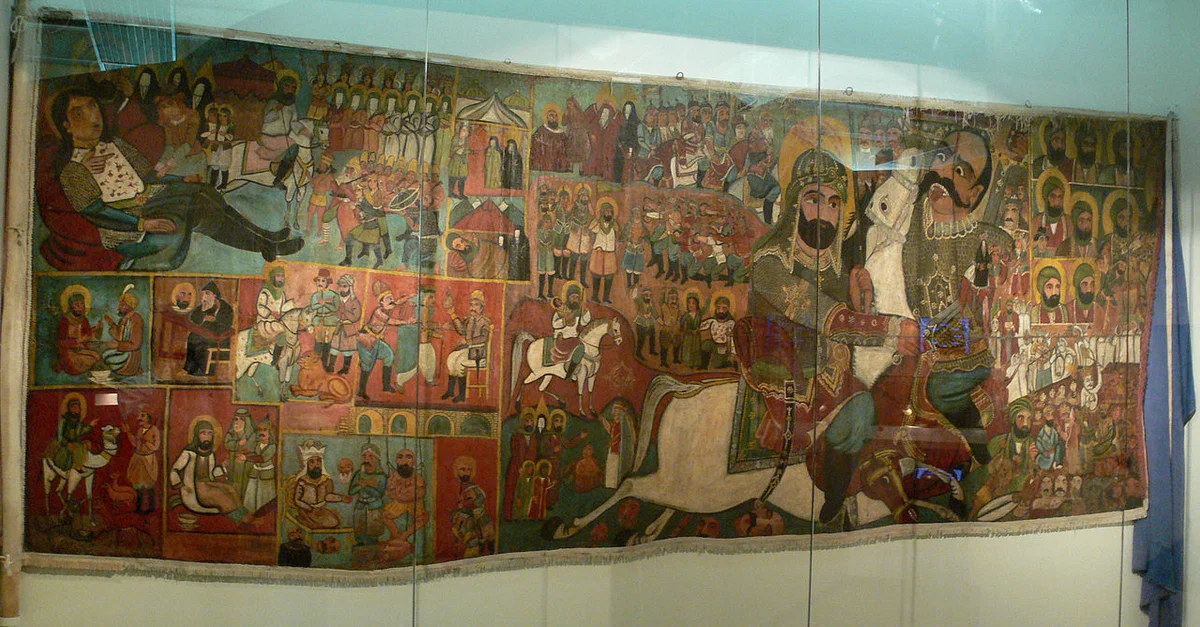 A painting of the Battle of Karbala in 680 CE Iran. Iranian painting, oil on canvas, 19th century. From the Tropenmuseum, Amsterdam