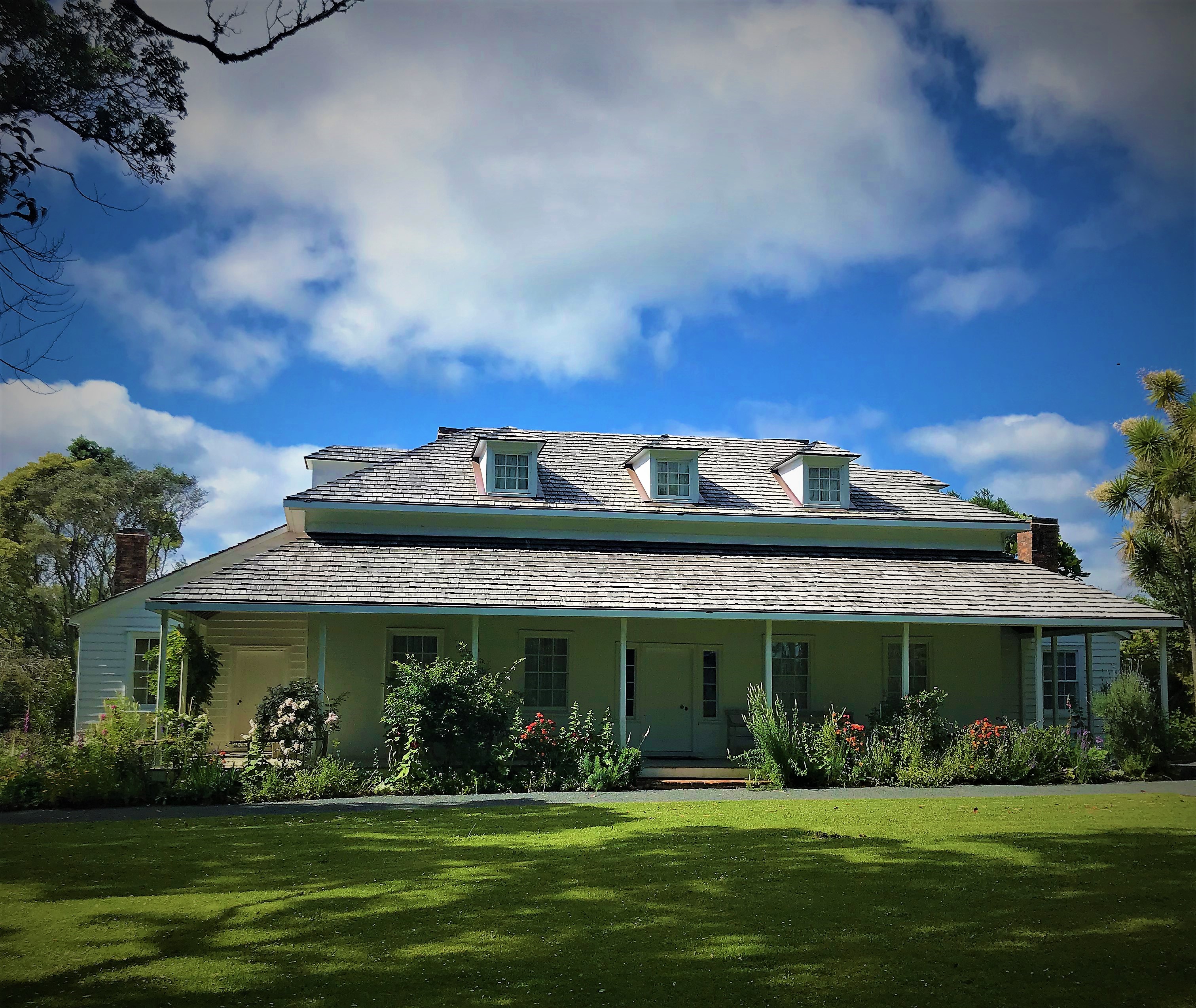 Three houses of similar design were originally constructed at the Te Waimate Mission in the Bay of Islands, New Zealand. This is the only house still standing on the site and it was built in 1832 CE. This photo was taken in November 2019.