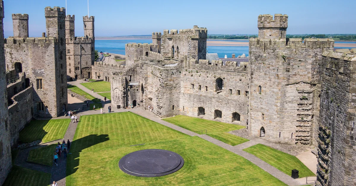 The two inner wards (baileys) of Caernarfon Castle, Wales. The castle was built by Edward I of England from 1283 to 1330 CE.