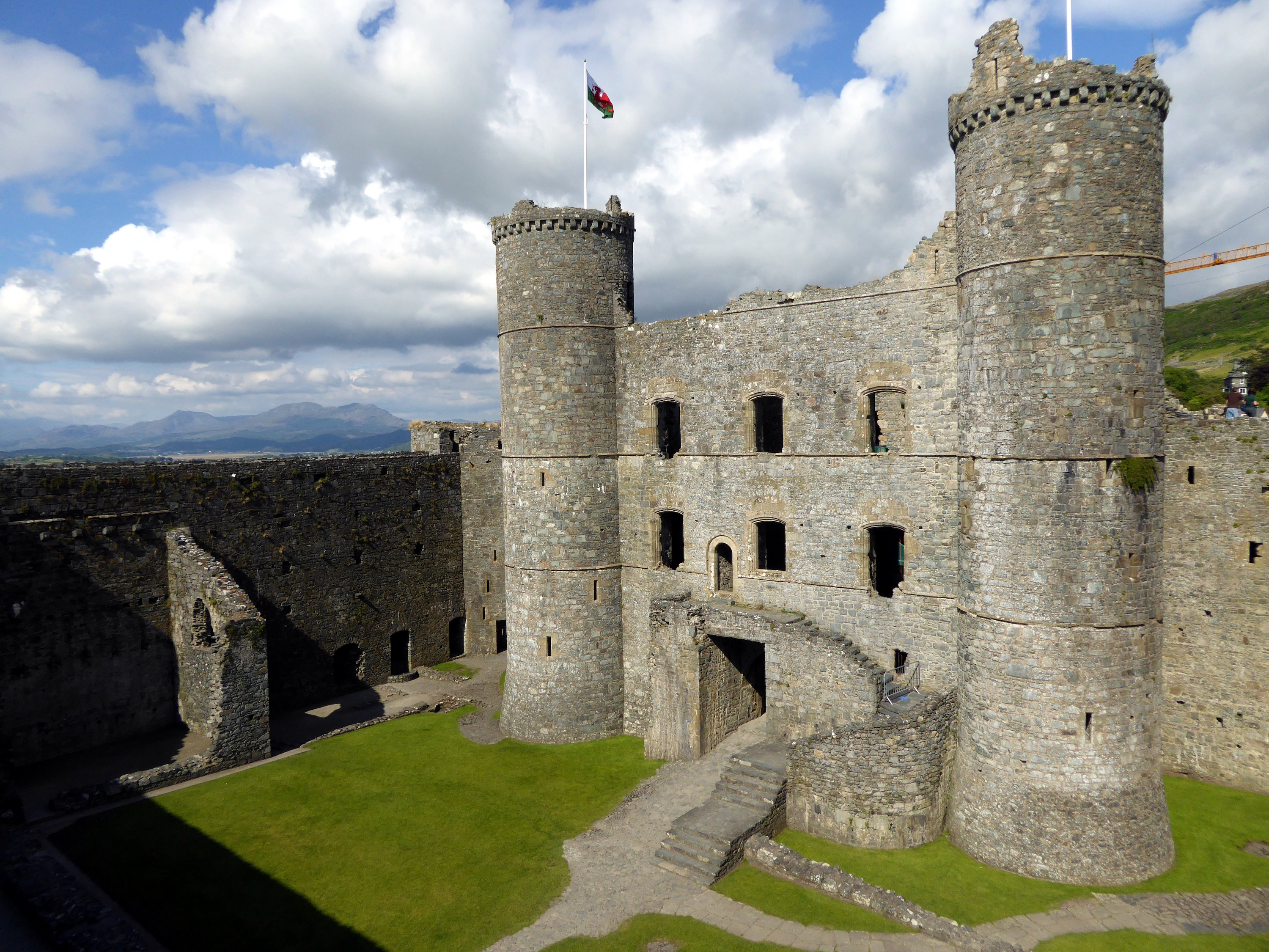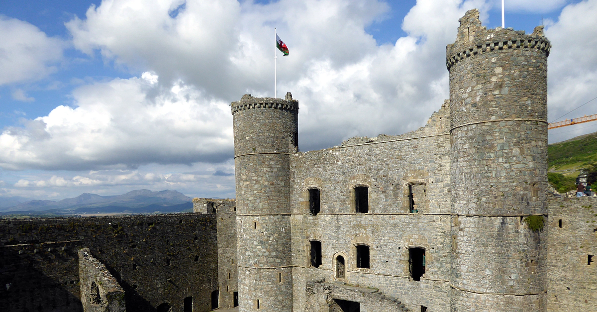 The western interior side of the Gatehouse of Harlech Castle in Wales, first built by Edward I of England (r. 1272-1307 CE) from 1283 CE and completed by 1330 CE.
