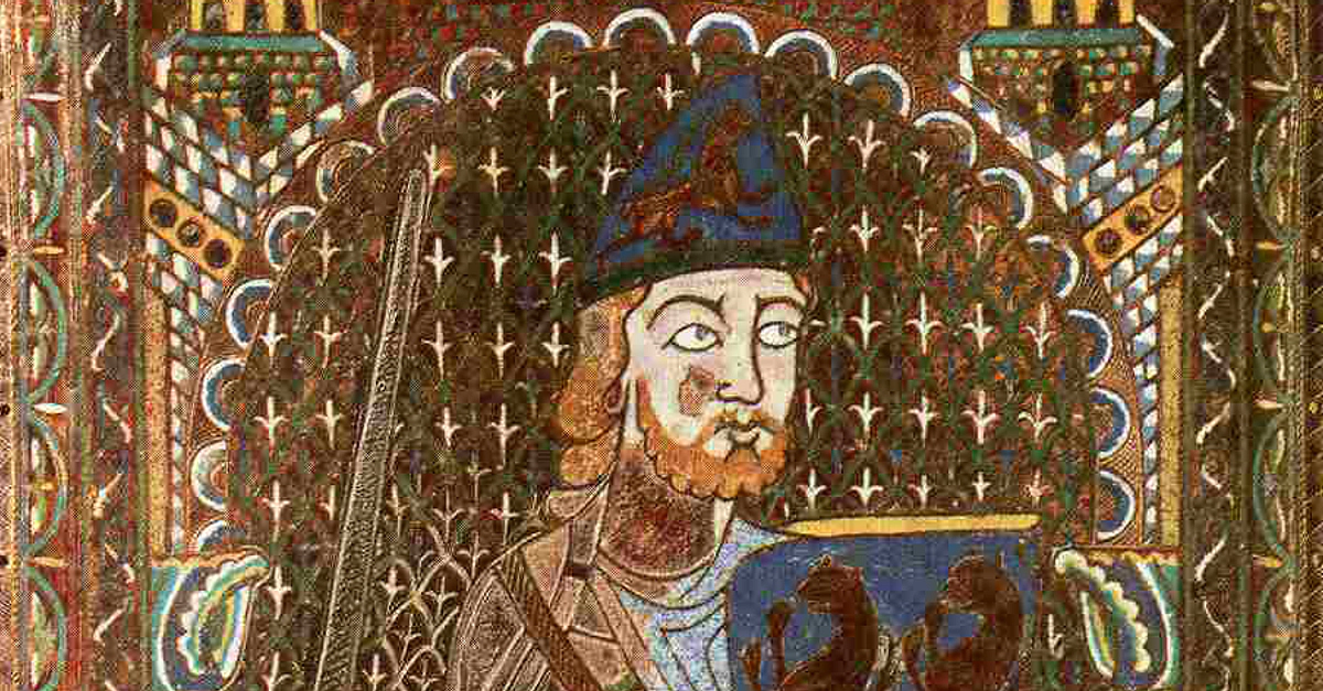 The enamel funerary plaque of Geoffrey Plantagenet (r. 1129 - 1151 CE). It depicts Geoffrey The plaque originally came from the Saint Julian of Le Mans where Geoffrey was buried. It is now in the Tessé Museum in Le Mans, France. Enamel on gilt copper, c. 1150 - 1155 CE.