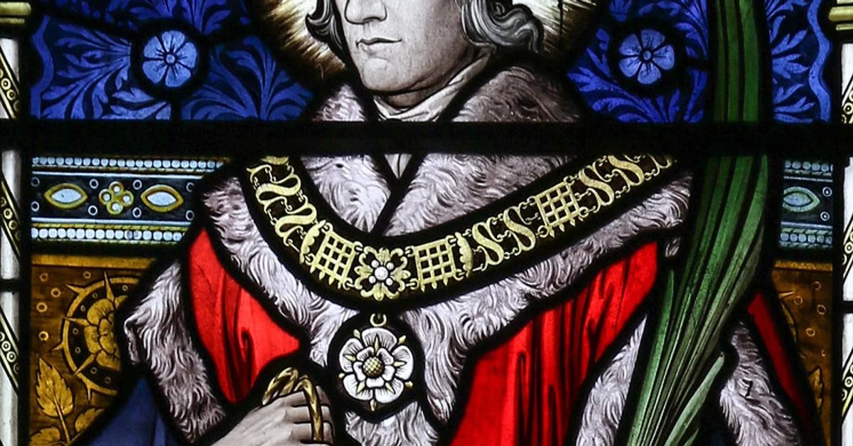 A stained glass window depicting Sir Thomas More (also known as St. Thomas More; 1478 - 1535 CE). From the Lancaster Cathedral, England.