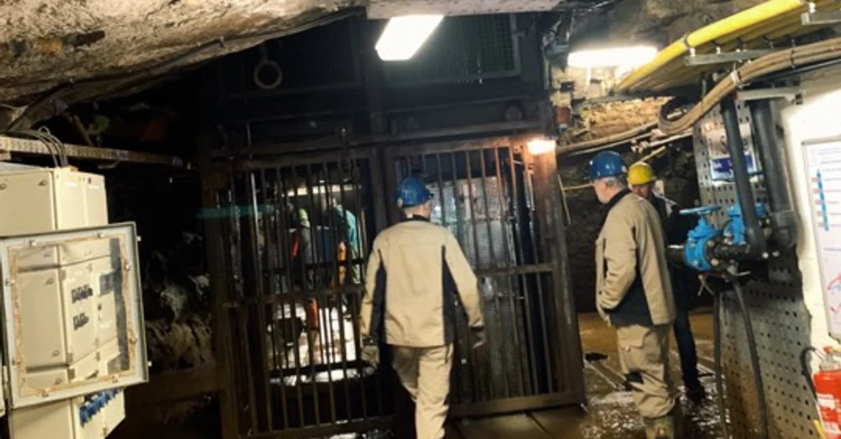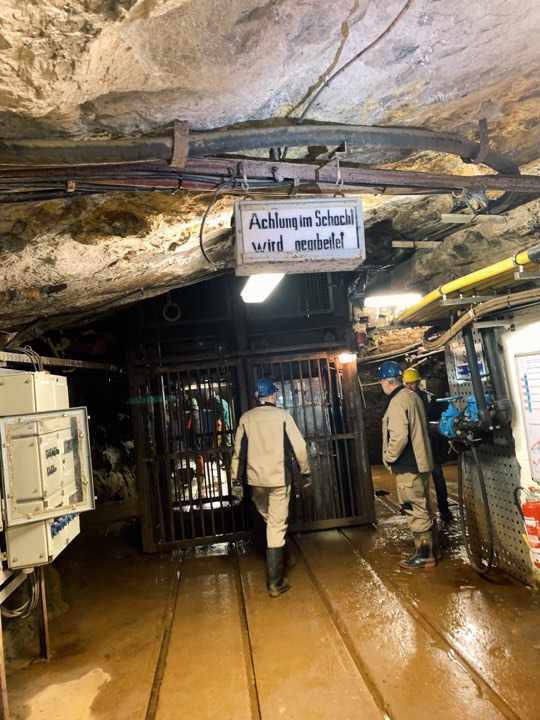 The elevator taking visitors down the Reiche Zeche shaft of the Silber Bergwerg Freiberg visitor mine.