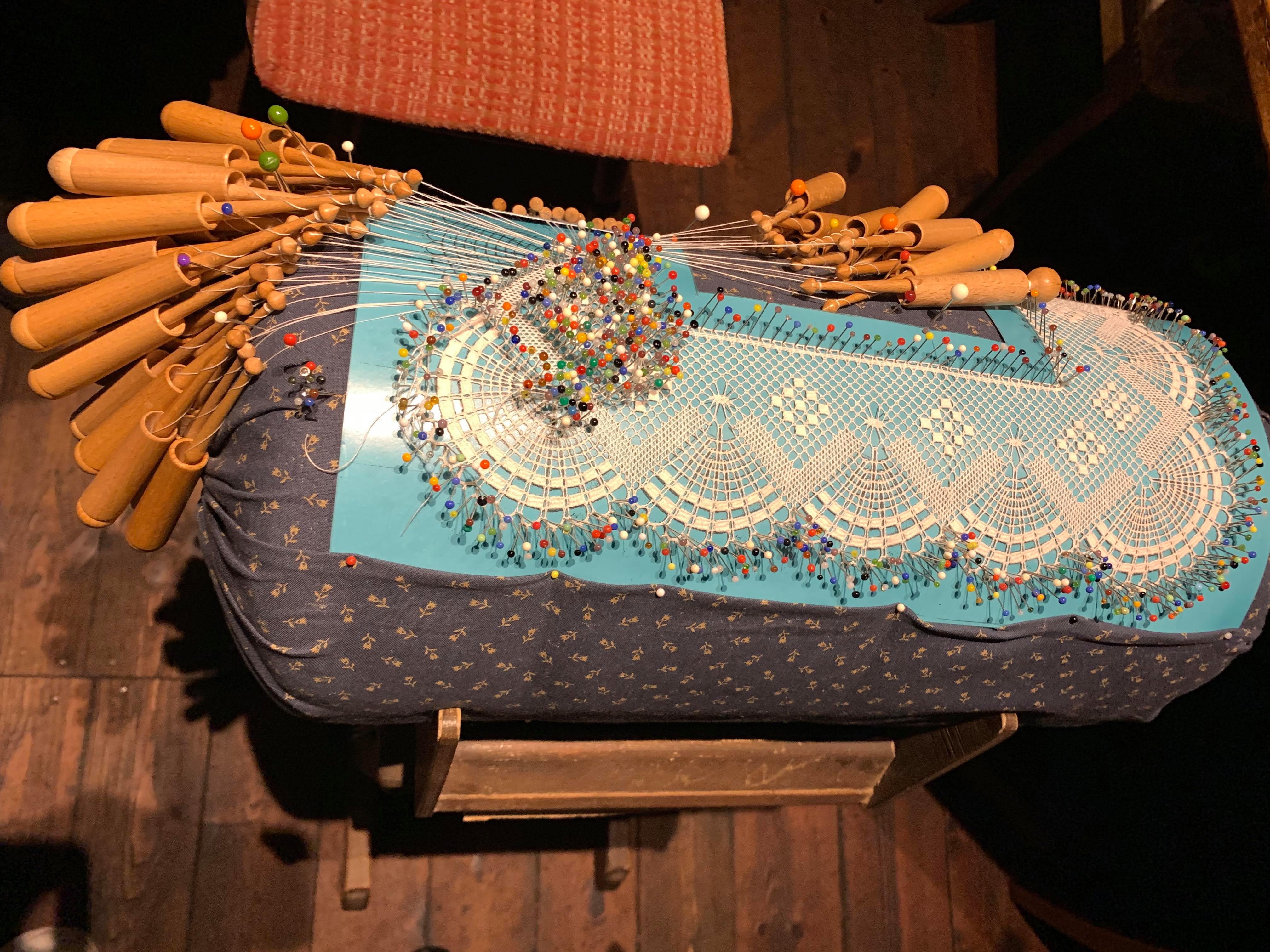 An example of bobbin lace making, traditional to the Ore Mountain region, as showcased at the Frohnauer Hammer Museum in Annaberg-Bucholz.