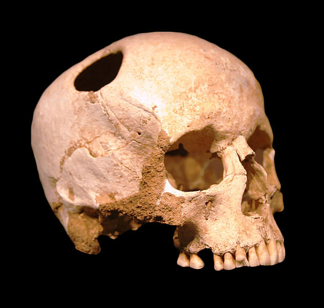 Jmh649. "Skull with Trephination." World History Encyclopedia, May 01, 2013. https://www.worldhistory.org/image/1166/skull-with-trephination/.