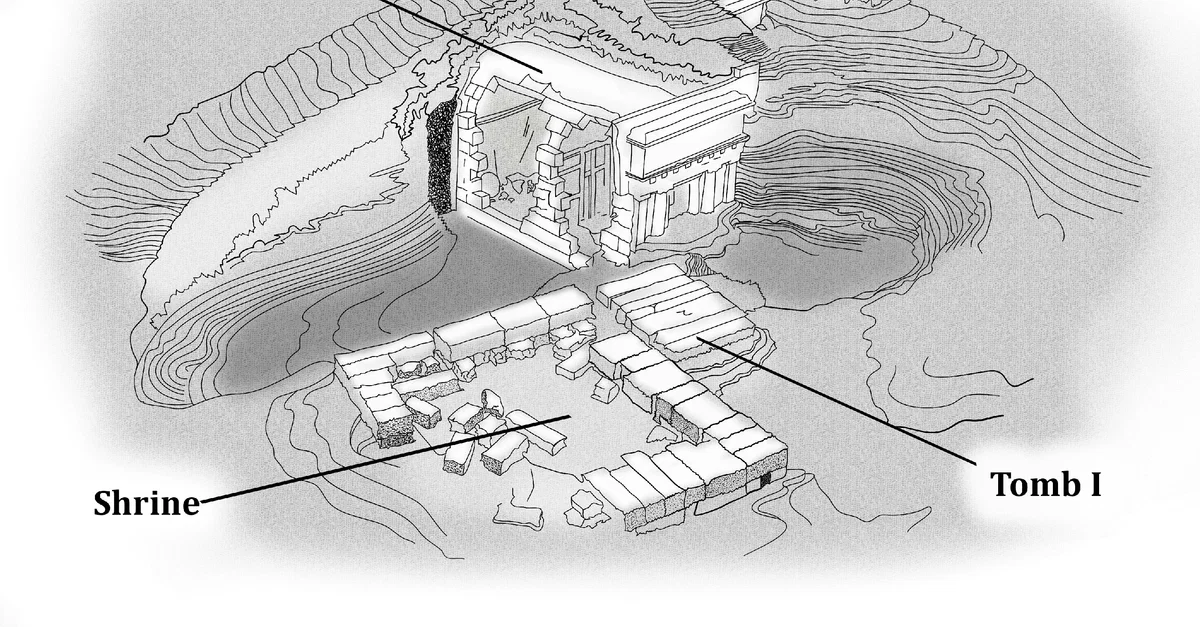 A model of the shrine and tombs under the Great Tumulus at Vergina. From Unearthing the Family of Alexander the Great. Grant (2019). p49. Used with permission from Pen & Sword Books.