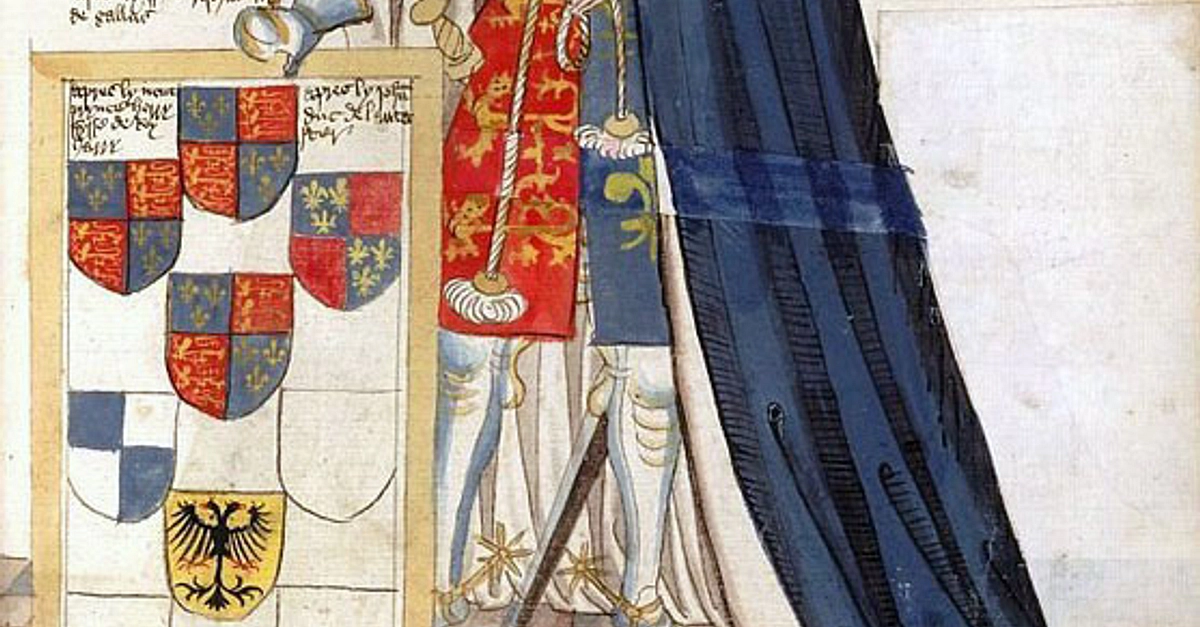 A mid-15th century CE illustration of Edward the Black Prince (1330-1376 CE) dressed as a knight of the Order of the Garter. From the Garter Book by William Bruge. (British Library, London)
