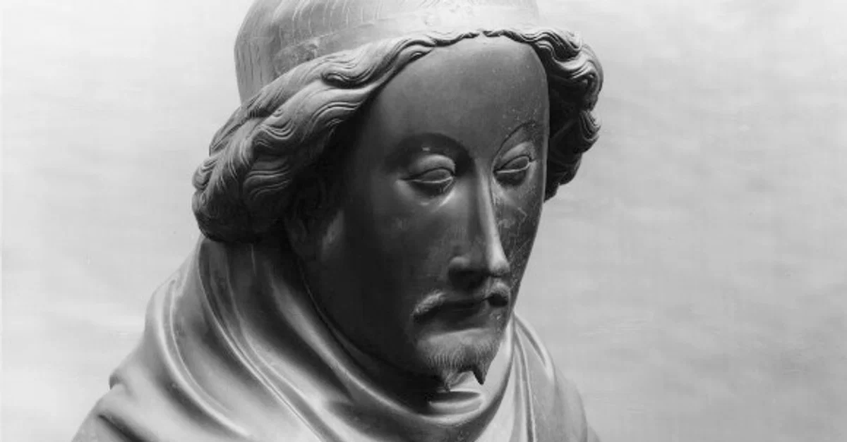 A sculpture of Richard II of England (r, 1377 - 1399 CE). Made in 1873 CE by Elkington & Co, cast by Domenico Brucciani. After a contemporary sculpture by Nicholas Broker and Godfrey Prest, made 1395-1397 CE. 787 mm (31 in) tall. (National Portrait Gallery)