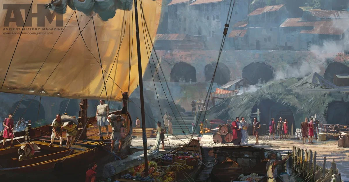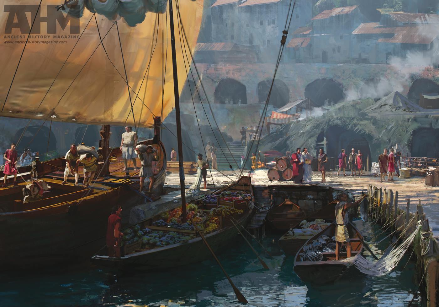 A recreation of a port in the Roman Empire. Courtesy of Ancient History Magazine / Karwansaray Publishers.