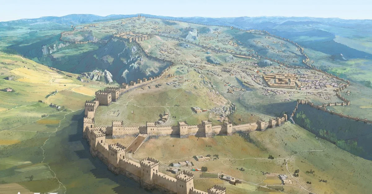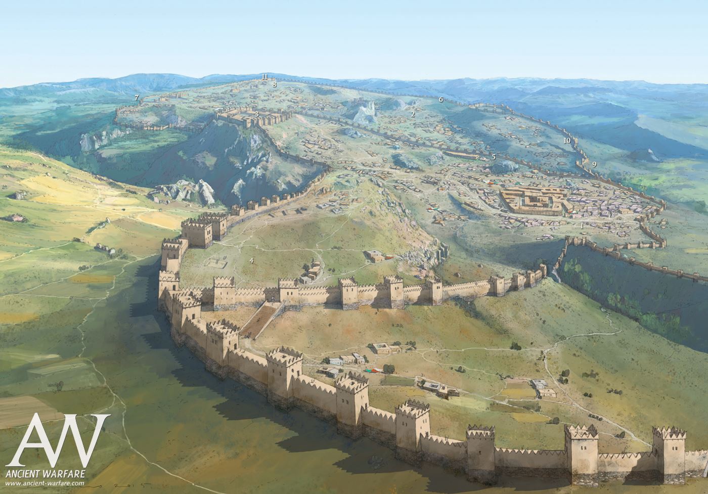 A modern recreation of the Hittite city of Hattusa as it probably appeared in antiquity, by Rocío Espín. Courtesy of Ancient Warfare Magazine / Karwansaray Publishers.