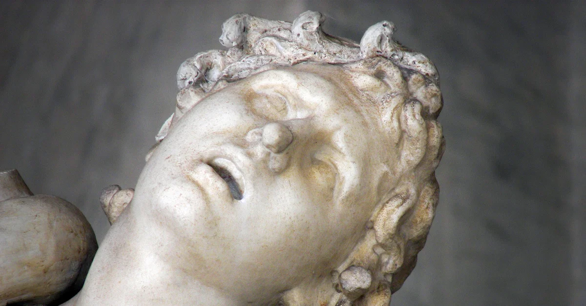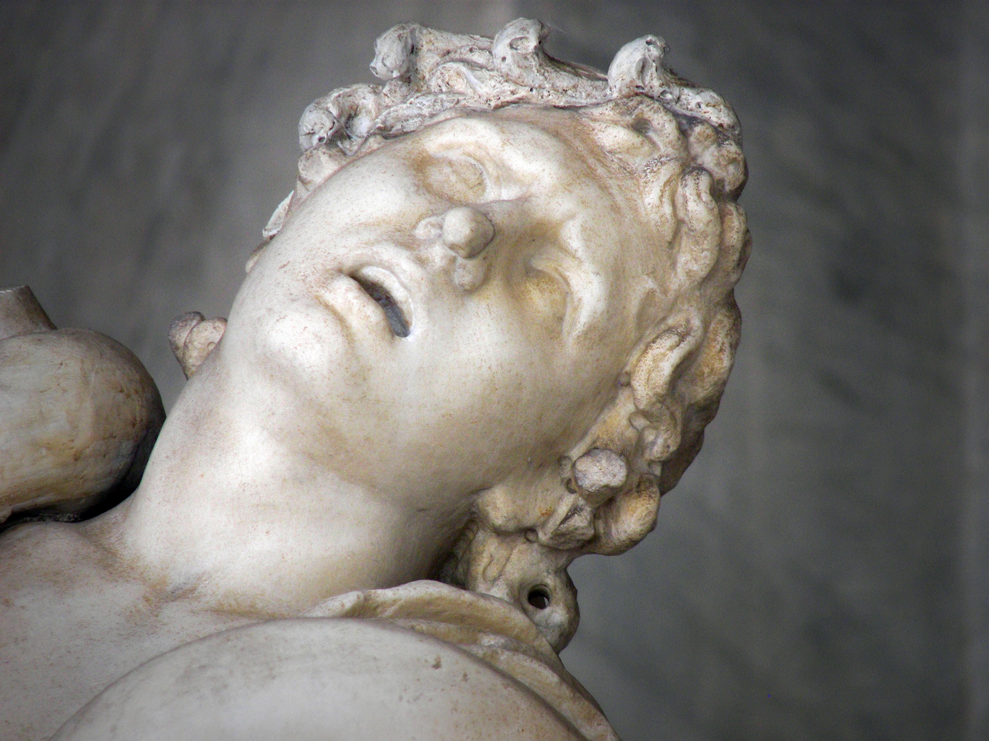 A detail from the Laocoön group, showing the anguished expression on the face of Laocoön's younger son, Thymbraeus. A Roman copy made after a Hellenistic original from c. 200 BCE.