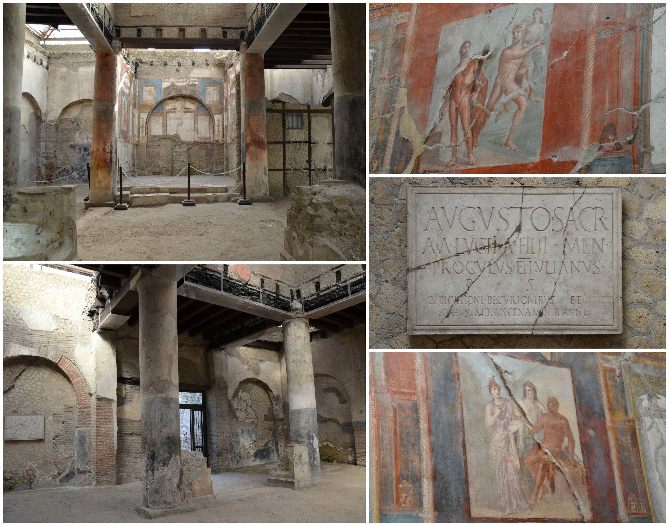 The interior of the so-called College of the Augustales in Herculaneum. The building has often been associated with the presence of the imperial cult in Herculaneum, but it might just as well be a meeting place for the town council, the local Curia or Senate House. It is richly decorated with fourth styles frescoes depicting scenes from the life of Hercules.