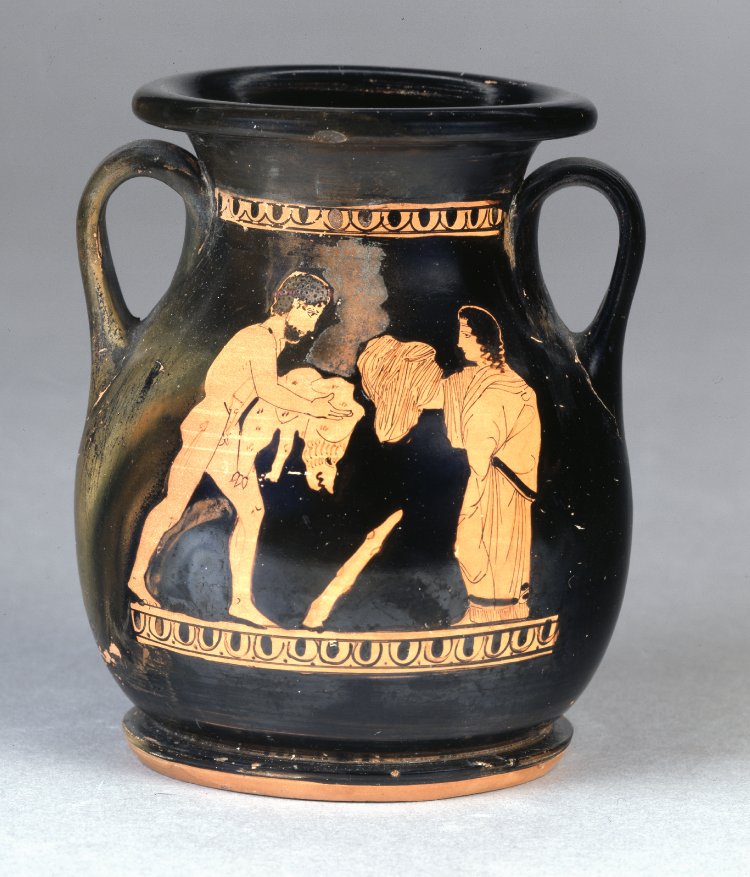 Red-figure pottery depicting Hercules who receives the poisoned robe with Nessus' blood. c. 430 BCE