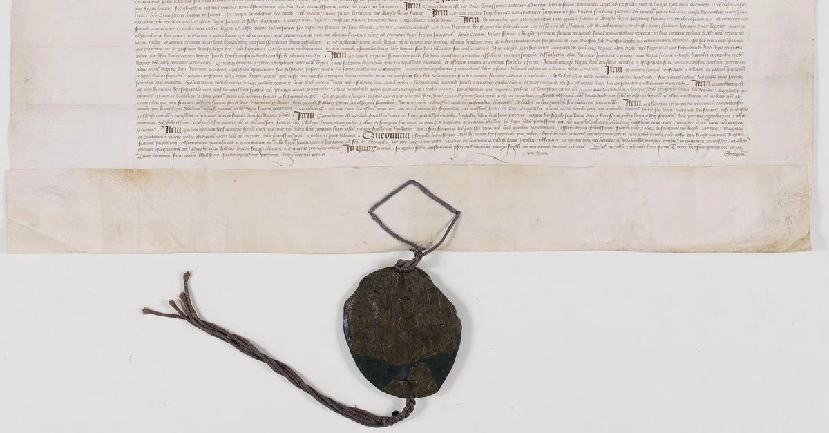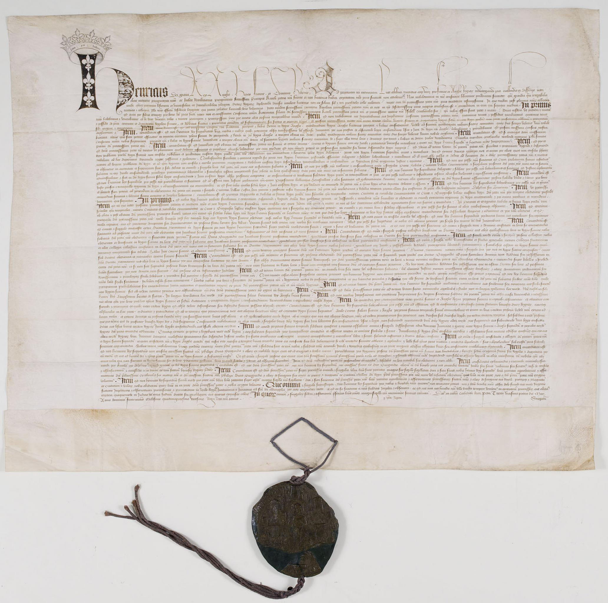 The ratification of the Treaty of Troyes, May 1420 CE. The treaty was signed between Henry V of England (r. 1413-1422 CE) and Charles VI of France (r. 1380-1422 CE) and agreed to nominate Henry as Charles' heir to the French throne. (French National Archives, Paris)