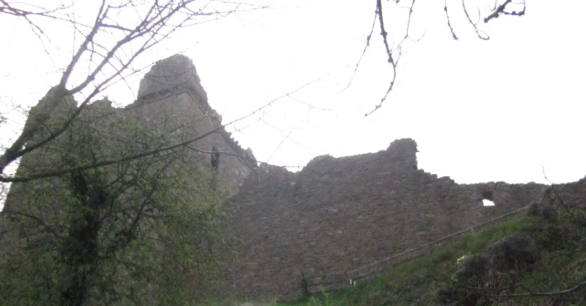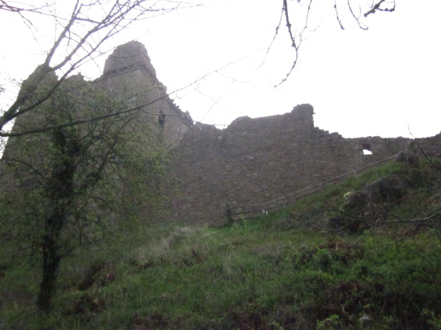 The towering ruins of Urquhart Castle, seen from the bank of Loch Ness below. Inverness, Scotland.