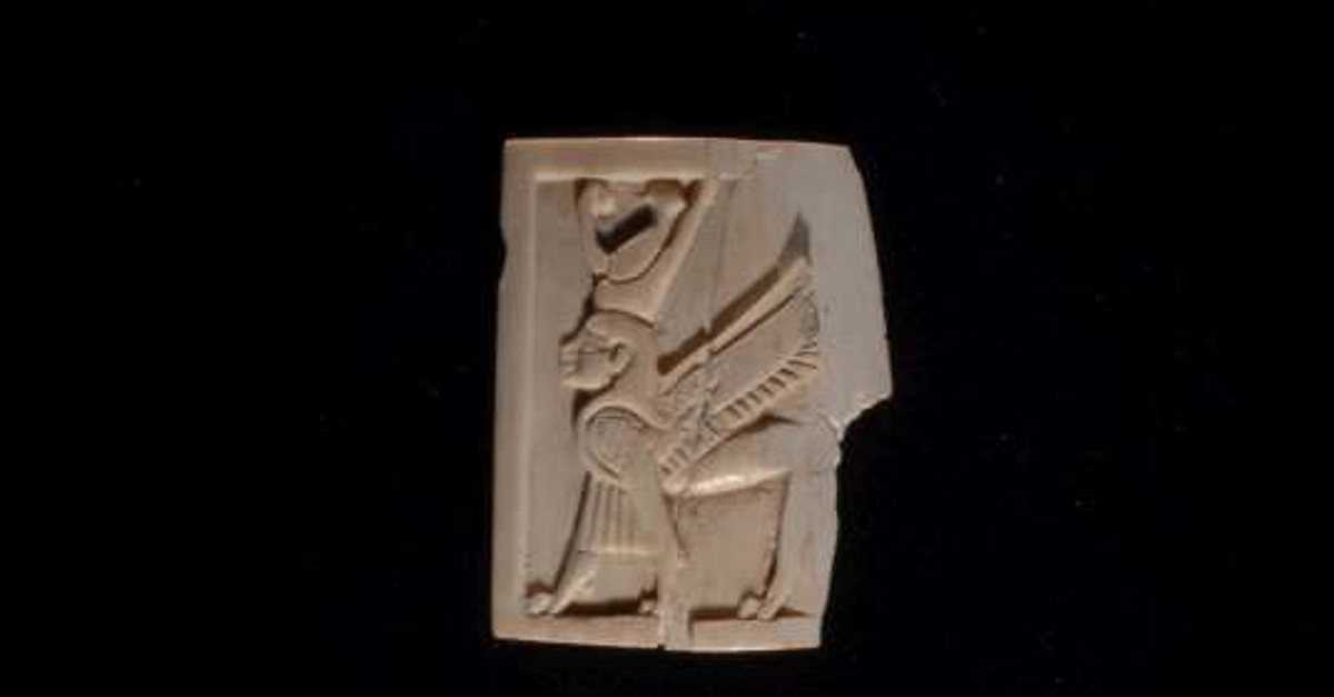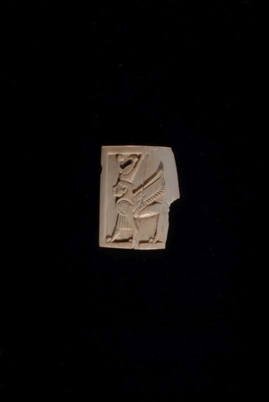 This object is an ivory furniture inlay depicting a striding sphinx. It was excavated from Samaria and dates to the Iron Age II (9th–8th century BCE). It has a length of 3.3 cm and a width of 2.6 cm. (The Israel Museum, Jerusalem) ©The Israel Museum, Jerusalem. Used with permission. Israel Antiquities Authority 1933-2597, Archaeology/Israelite & Persian Periods.