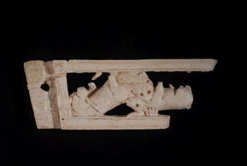 This object is an ivory furniture inlay depicting a lion and bull in combat. It was excavated from Samaria and dates to the Iron Age II (9th–8th Century BCE). (The Israel Museum, Jerusalem) Copyright of The Israel Museum, Jerusalem. Used with permission. Israel Antiquities Authority 1933-2552, Archaeology/Israelite & Persian Periods.