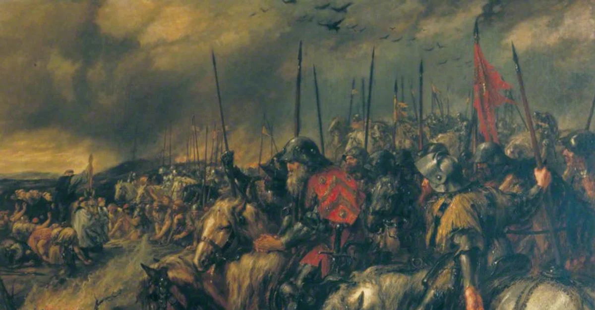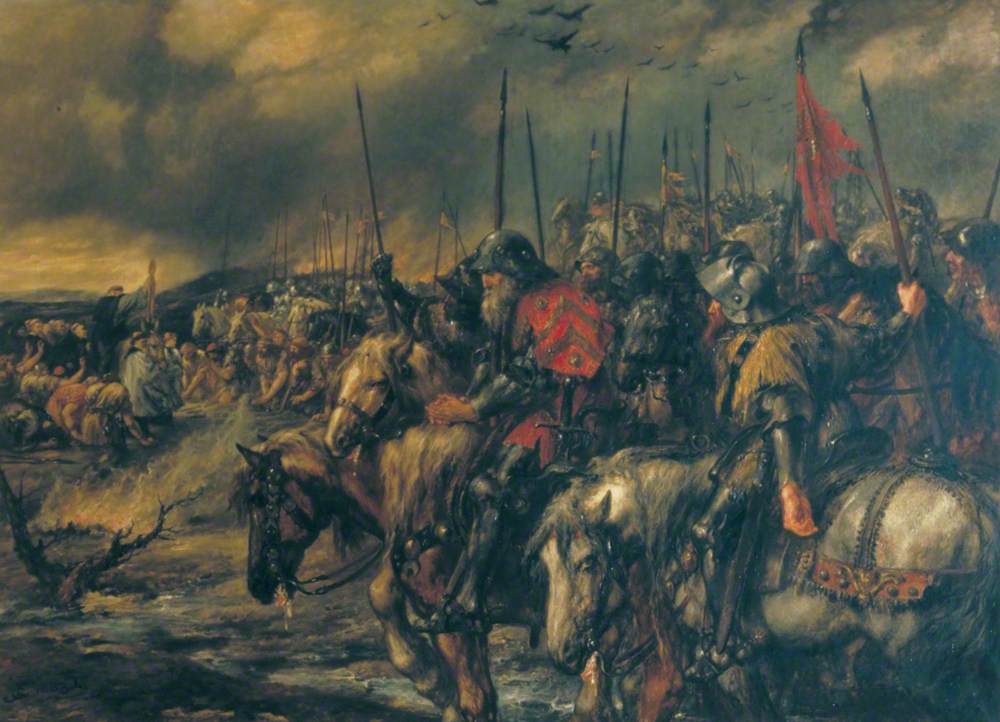 "The Morning of the Battle of Agincourt" by John Gilbert (1817 - 1897 CE). Made 1884 CE. Oil on canvas. 122 cm (48 in) x 168 cm (66 in). Image courtesy of ArtUK.(Guildhall Art Gallery)