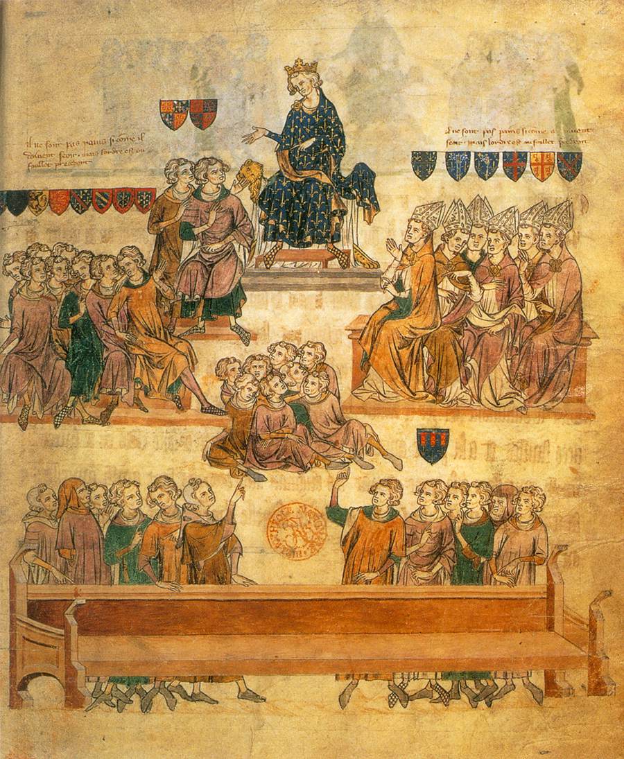 A 14th century CE manuscript illustration showing Philip VI of France (r. 1328-1350 CE) presiding over the lawsuit of Robert III of Artois. (MS fr: 18437, National Library of France, Paris)