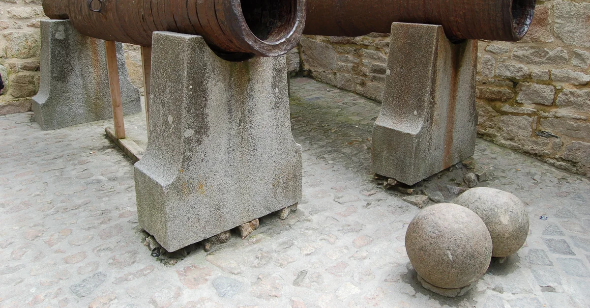 Two English bombard canons at Mont-Saint-Michel, Normandy. The canons were abandoned by Thomas Scalles in 1434 CE during the Hundred Years' War (1332-1453 CE) between England and France