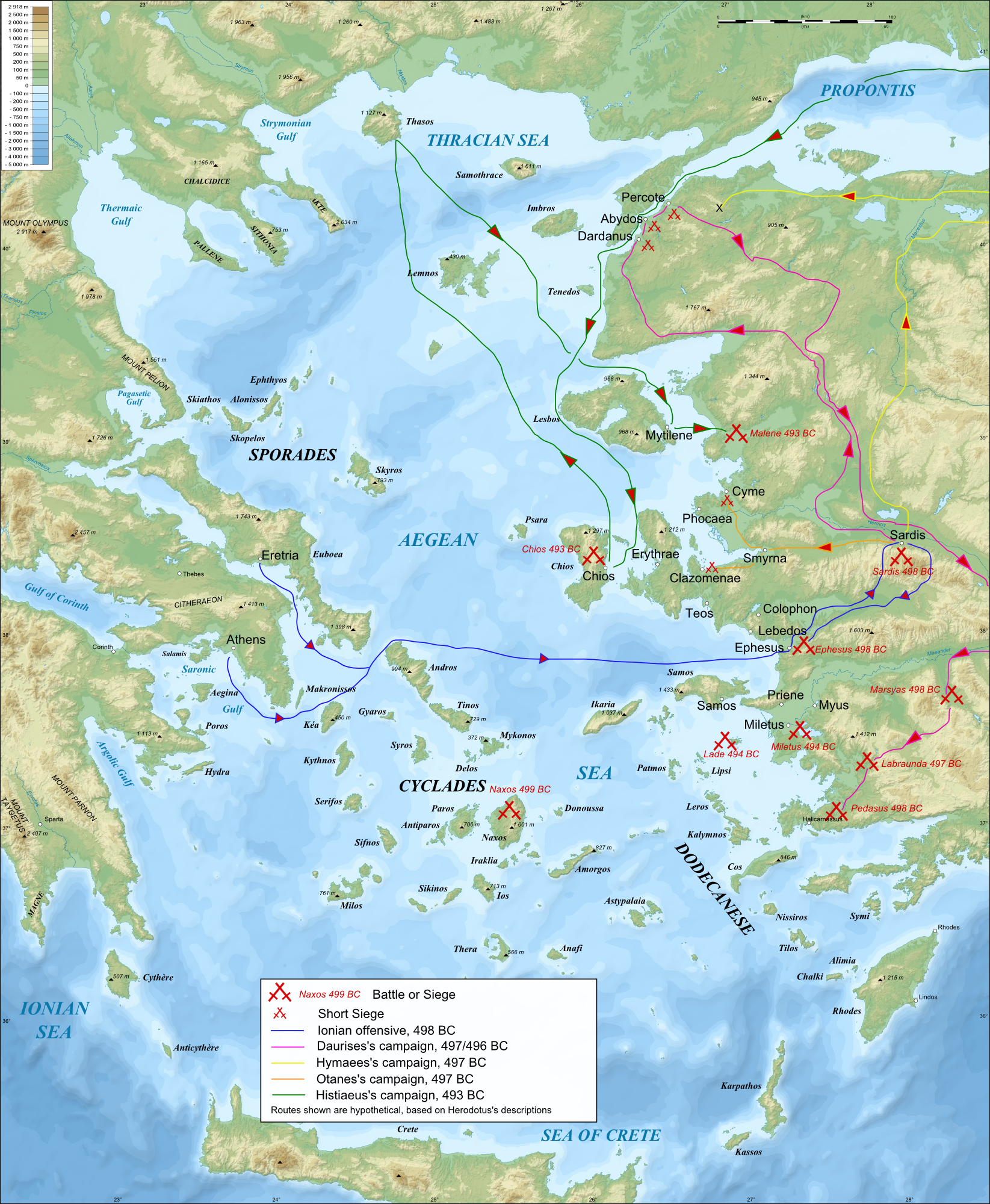 Map showing the major events of the Ionian Revolt.