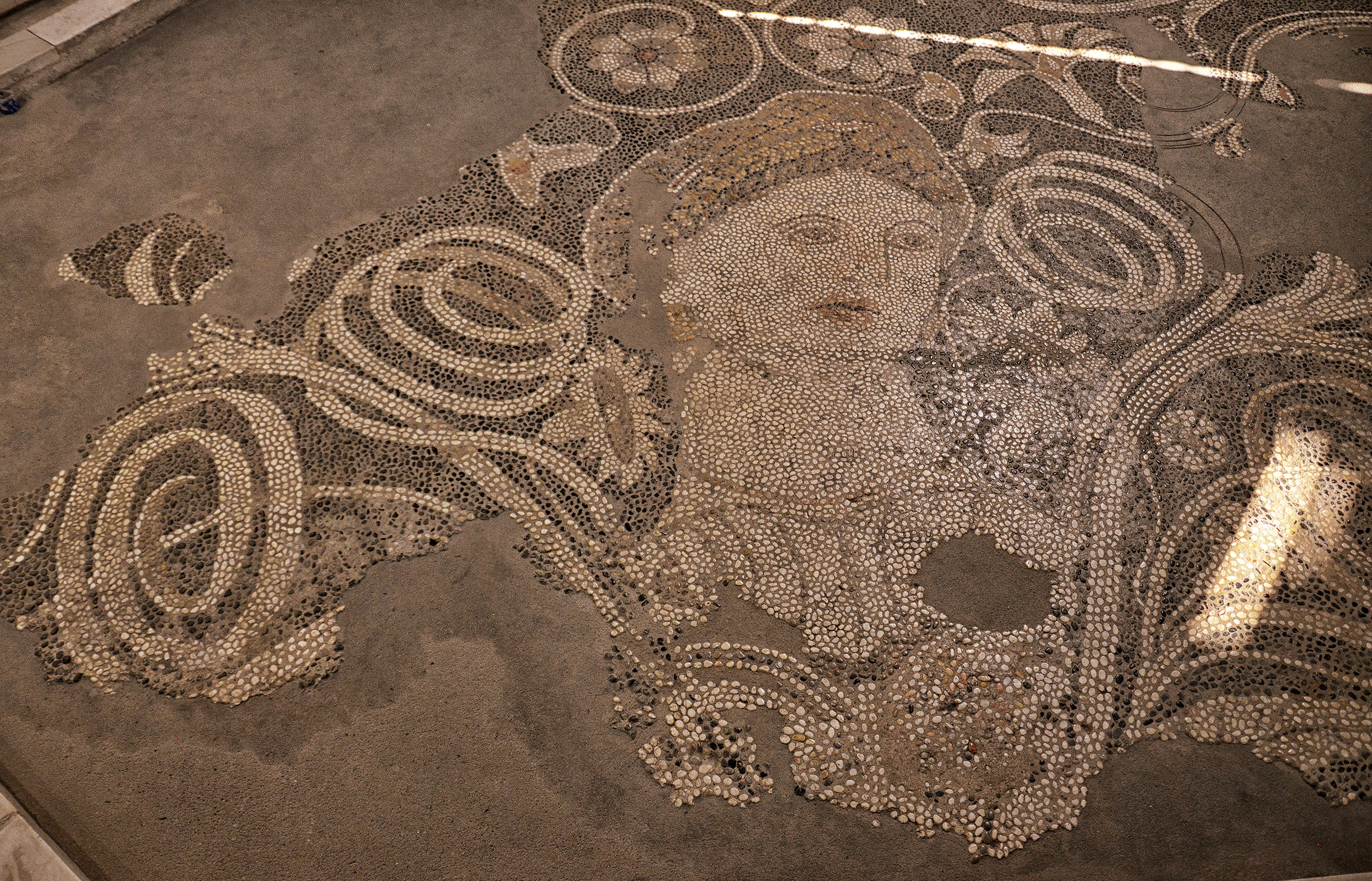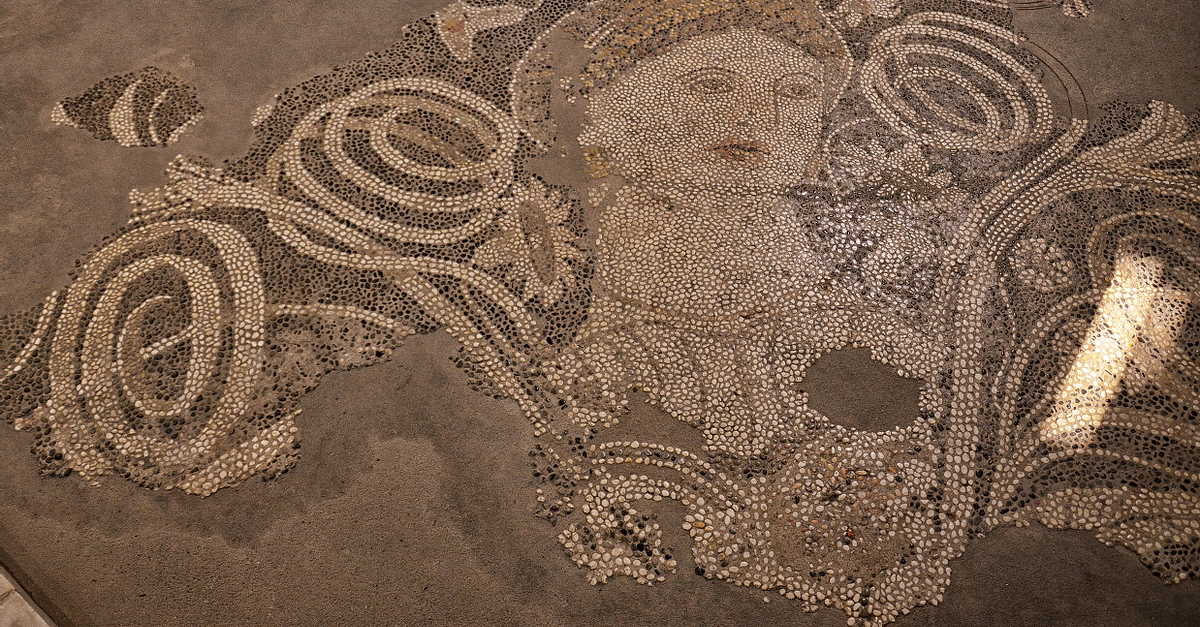 Mosaic called "The Beauty of Durrës", from Epidamnos/Dyrrhachium, 4th century BCE. National Museum of History in Tirana, Albania.