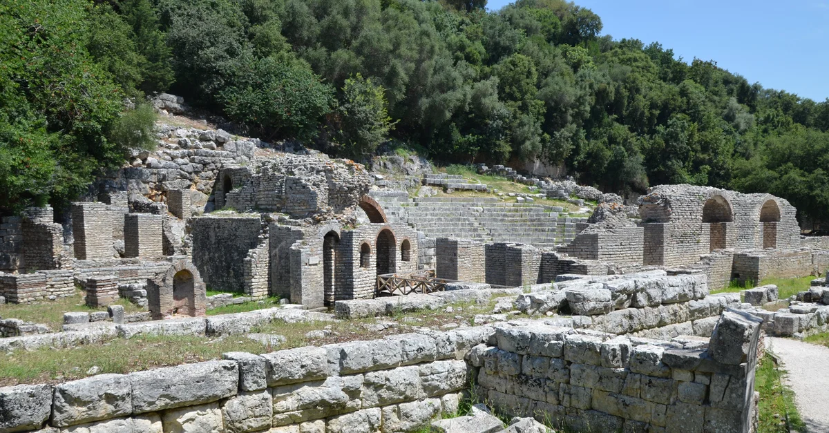 The Agora of Butrint (Albania) with the Roman Forum and the Sanctuary of Asclepius in the background.