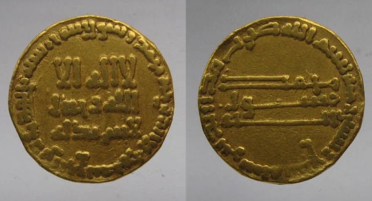 Dinar (gold coin) minted in 783 CE, during the reign of al-Mahdi (r. 755-785 CE) of the Abbasid dynasty (750-1258 CE).