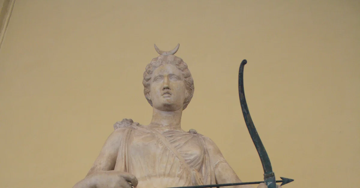 A 2nd century CE Roman statue of the Greek goddess of hunting Artemis. The statue is a copy from a mid-4th century BCE Greek original. Weapons in bronze were commonly added to marble sculpture, such as the bow here. (The Vatican Museums, Rome).