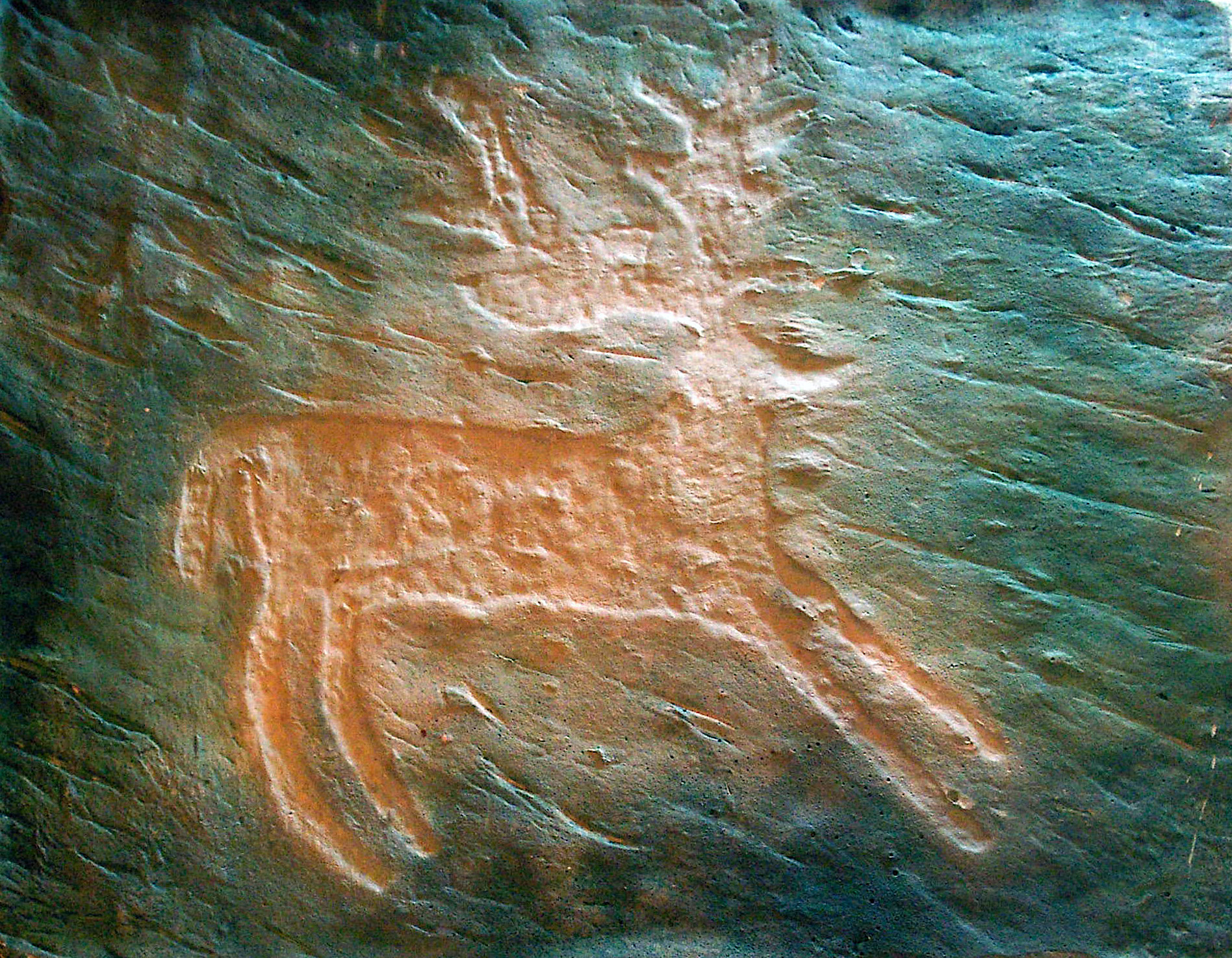 Stag rock carving at Valcamonica, Lombardy, Italy. 2800-2400 BCE. Plaster copy. (Archaeological Museum of Milan)